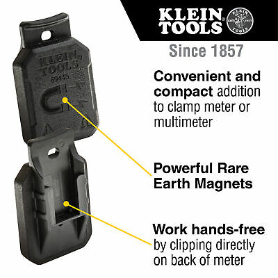 The rare earth magnetic hanger from Klein Tools has a powerful grip. It clips directly to select Klein Tools clamp meters and multimeters. Easy-to-use and convenient for taking hands-free readings.