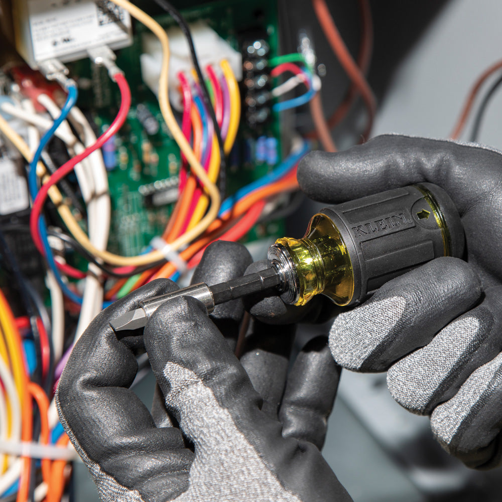 This Multi-Bit Screwdriver and Mini Ratchet Set includes 3 of Klein's most versatile multi-tools. The 8-in-1 Impact Rated Adjustable Stubby Screwdriver (Cat. No. 32308) includes 7 different screwdriver bits and a 1/4-Inch nut driver. The Slim-Profile Mini Ratchet (Cat. No. 65200) is perfect for fastening in small, tight spaces. The low-profile gear head only requires a 5-Degree sweep. The 4-in-1 Precision Electronics Screwdriver has a Swivel Cap, (Cat. No. 32581).