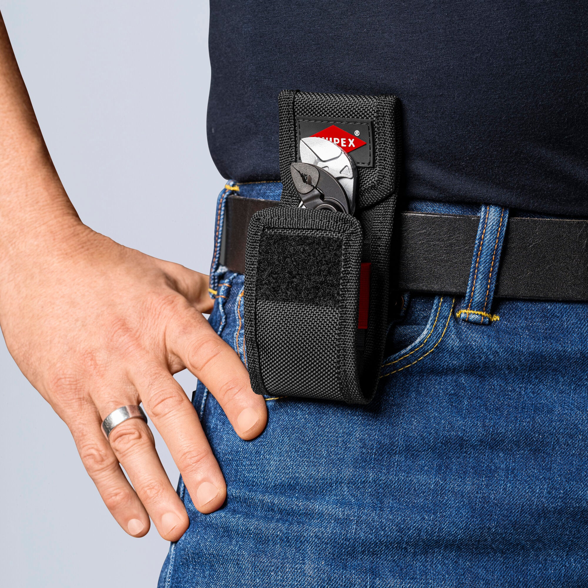 The KNIPEX Mini Pliers Set XS combines the gripping power of a Cobra® Pliers and precise functionality of a Pliers Wrench. The tools are recognized for their high-quality construction and durability. Ideal for every day carry (EDC), each set comes in a belt pouch and includes one (1) each: Cobra® XS Water Pump Pliers and Pliers Wrench XS. 87 00 100 - 4" Cobra® XS Water Pump Pliers. Grips like a big tool: The smallest water pump pliers in the world with full functional capability. One-handed quick adjustment up to 1" gripping capacity. The slim head provides a firm grip even in tight spaces. Self-locking on pipes and nuts: no slipping off the workpiece and low hand force required. 86 04 100 - 4" Pliers Wrench XS. At only 4" this is the smallest fully functioning pliers wrench in the world. One-handed quick adjustment up to 3/4" gripping capacity. Excellent for gripping, holding, pressing and bending applications. Parallel jaws evenly distribute force for a secure grip. Both tools have a pinch guard preventing fingers being pinched. Texturized handles on both tools for a secure grip. Belt pouch made of durable polyester fabric with sewn-in belt loop to easily slip on belt. Pouch holds both tools and includes fabric cover with hook and loop fastener to keep tools secure inside.