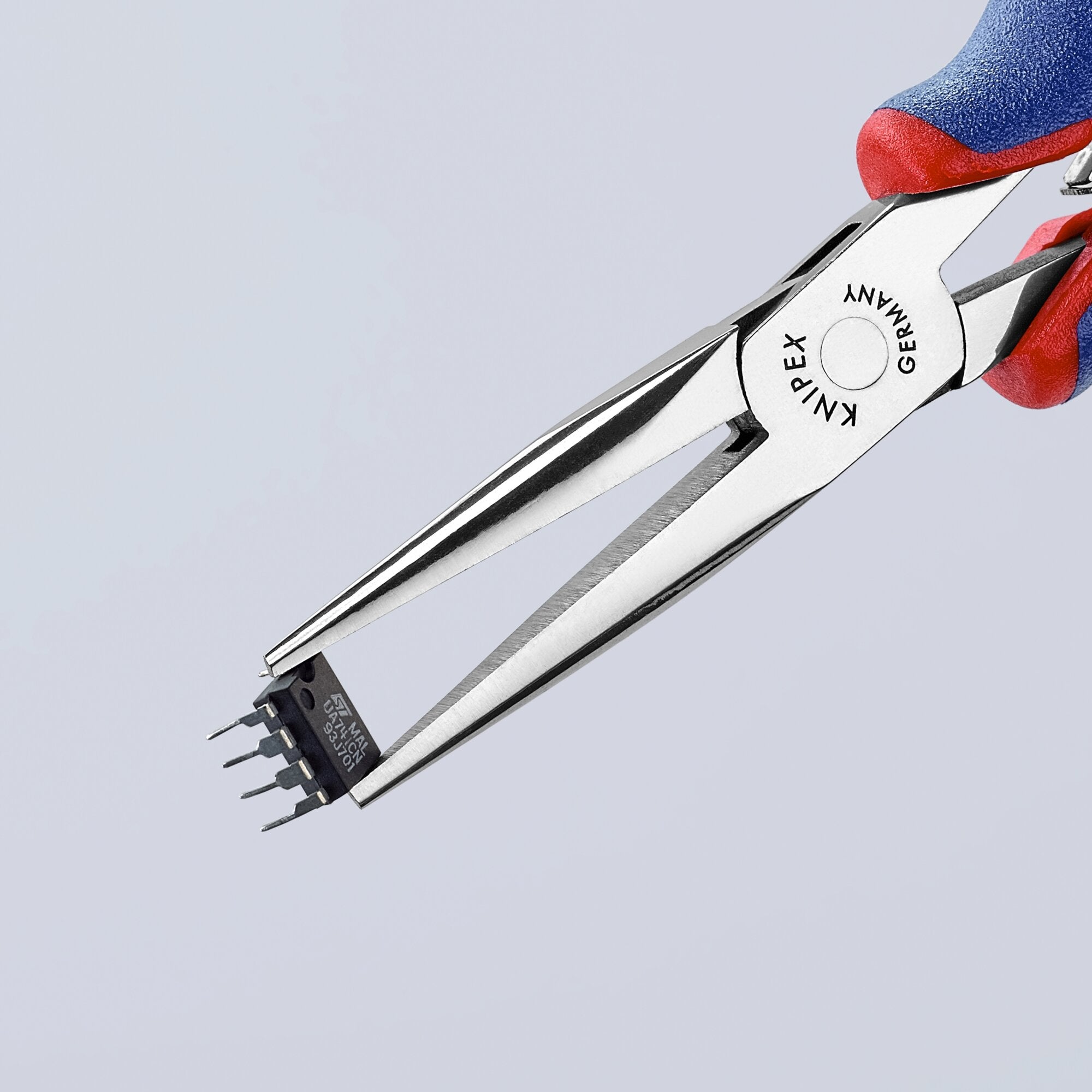 Precision pliers for ultra fine assembly work in electronics and fine mechanics. Designed for gripping, holding and bending small components. Sturdy, zero-backlash box joint. Smooth gripping surfaces and rounded edges prevent damage to components. Low-friction double spring for gently and even opening. Used for gripping, holding and bending. The mirror polish together with a fine film of oil offer effective rust protection - no circuit faults caused by peeling chrome from plated tools. Half-round, smooth jaws. Special tool steel; forged, oil-hardened.