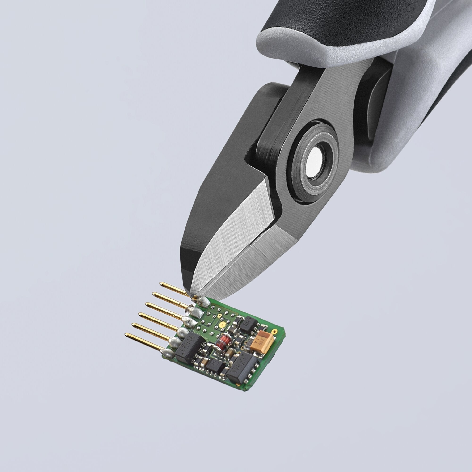 • Very precisely ground and sharp cutting edges with very small bevels for precise cutting work on small electronic components