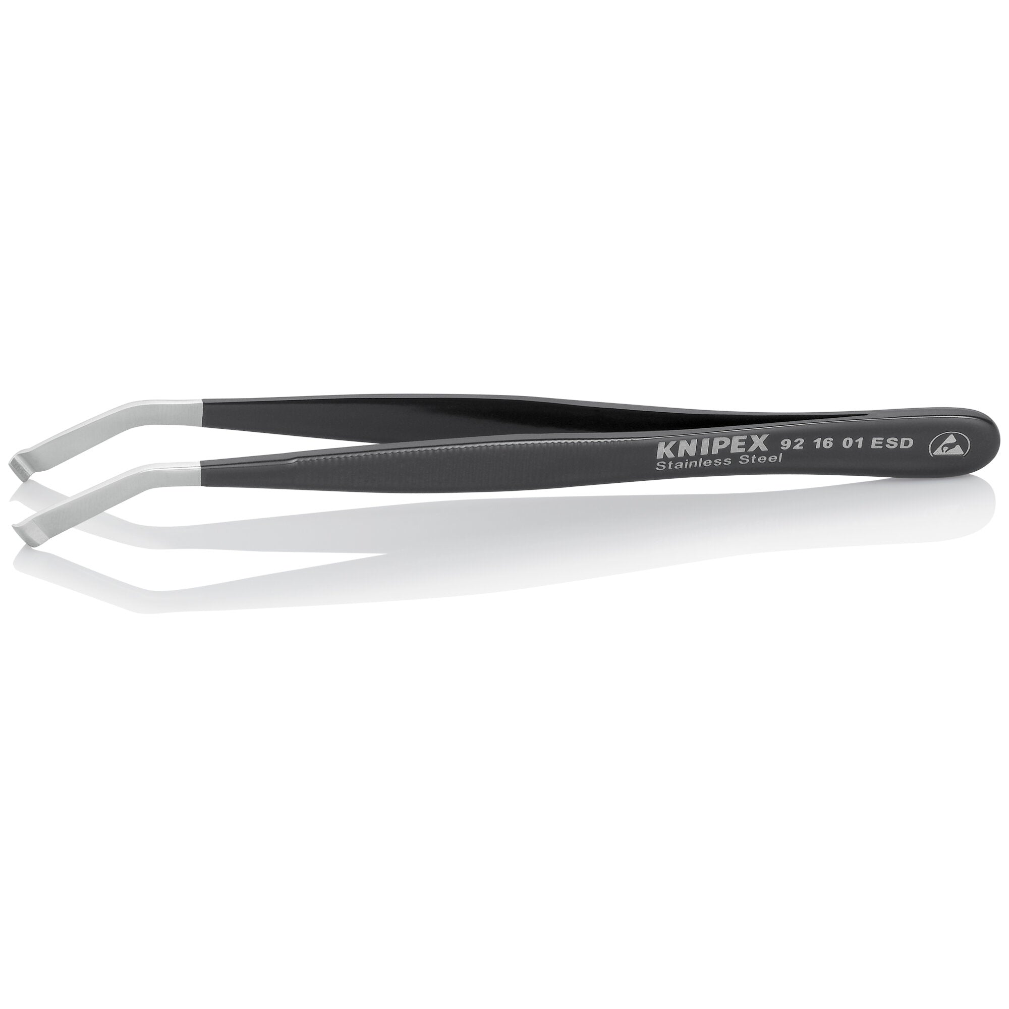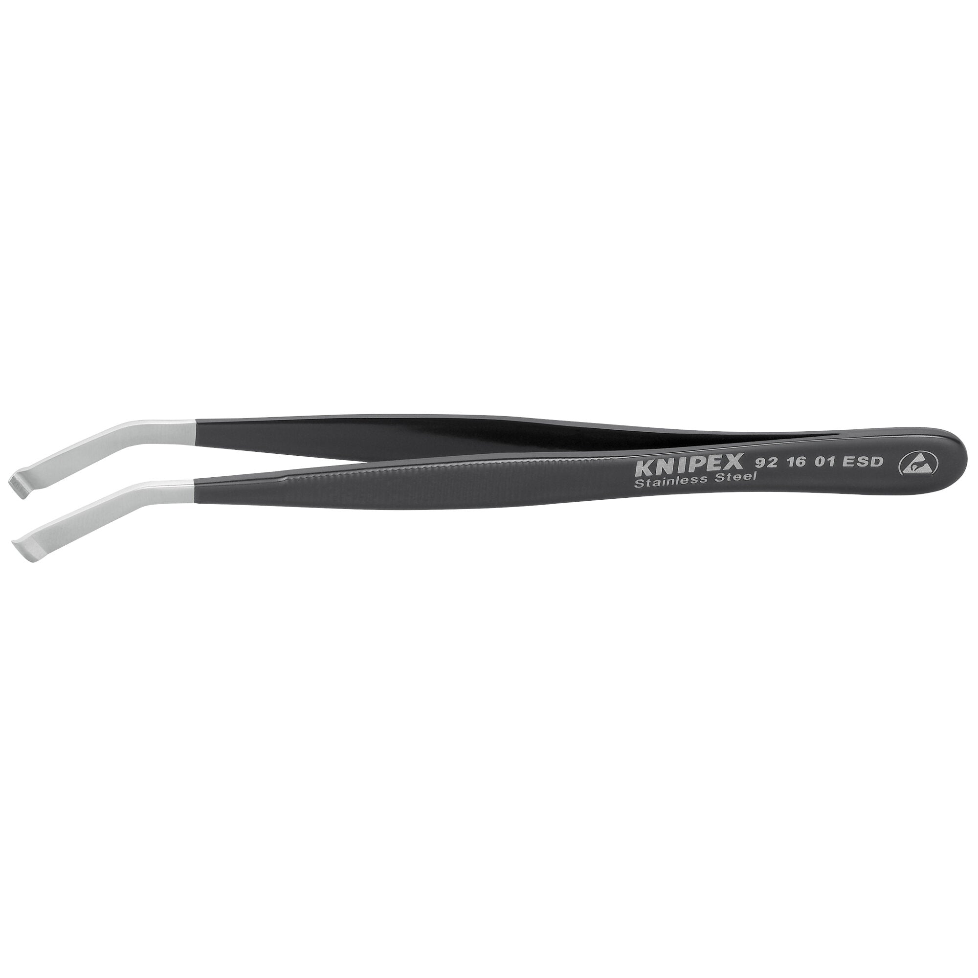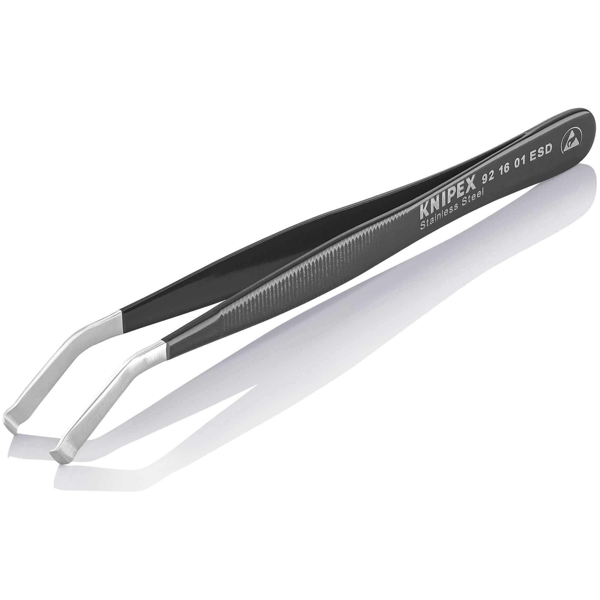 Stainless steel offers corrosion resistance. Angled tips make it easier to reach and grasp objects in tight or hard-to-reach spaces. Positioning tips offer exact positioning of components when working on surface mounted devices (SMD) or through hole technology (THT). Smooth gripping surface will not mar fine components. Serrated handles provide a secure grip for better control and maneuverability. 80% anti-magnetic design minimizes magnetic interference. ESD handles discharge electrostatic energy through the handles in a gradual and controlled manner. For through-hole technology (THT) and pin-in-hole technology (PIH).