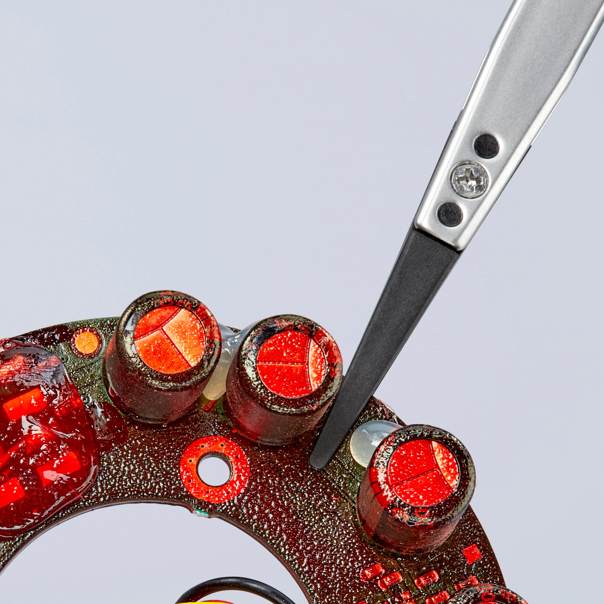 Premium stainless steel resists most chemicals, salts and acids. Straight tips provide excellent precision and control when picking up and handling small objects. Blunt tips offer a firm grip but won't damage surrounding components. Smooth gripping surface will not mar fine components. Smooth handles minimizes any potential interference with surrounding materials. 80% anti-magnetic design minimizes magnetic interference. ESD handle versions discharge electrostatic energy through the handles in a gradual and controlled manner. Uses replaceable ESD tips (Conductive 102/103 OHM regarding DIN EN 61340-5-1) - Part Number 92 89 01.