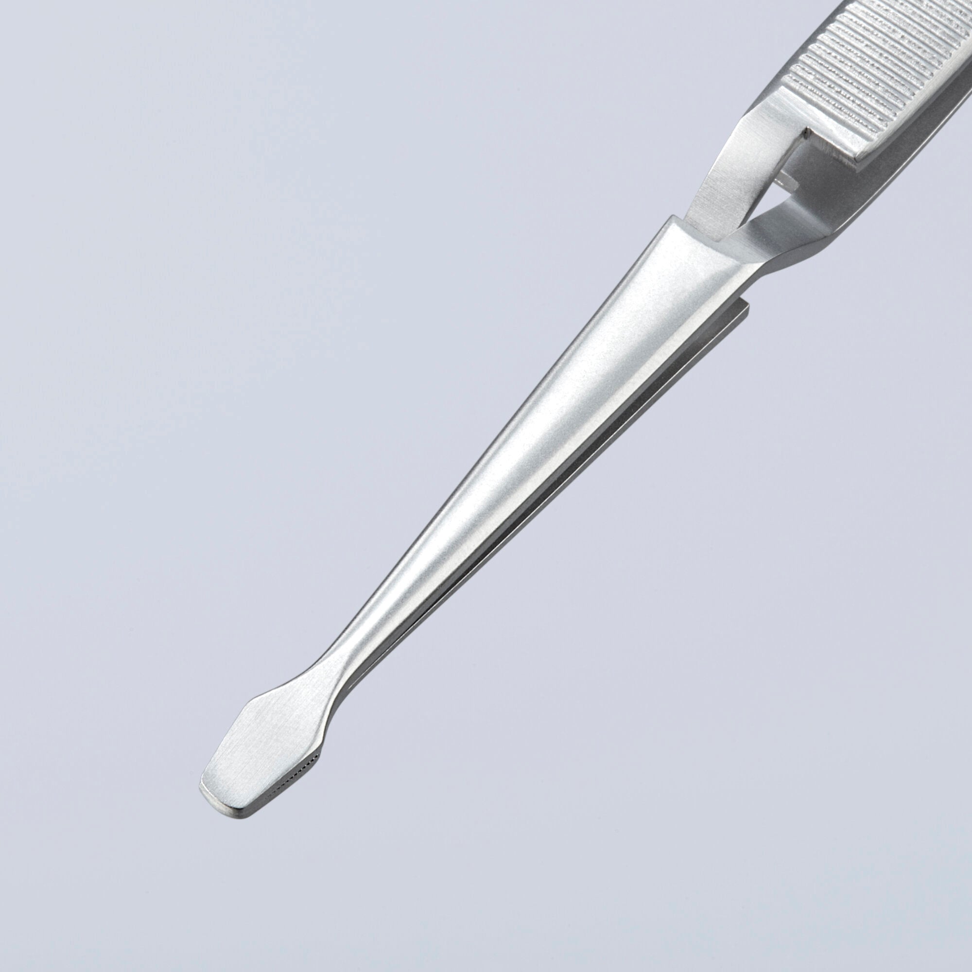 Stainless steel offers corrosion resistance. Straight tips provide excellent precision and control when picking up and handling small objects. Blunt tips offer a firm grip but won't damage surrounding components. Serrated gripping surface provides secure and firm grip on objects. Serrated handles provide a secure grip for better control and maneuverability. 80% anti-magnetic design minimizes magnetic interference. The cross over design provides a spring force that makes these holding tweezers perfect for soldering small components. For soldering work on transistors, gold wire diodes, etc..