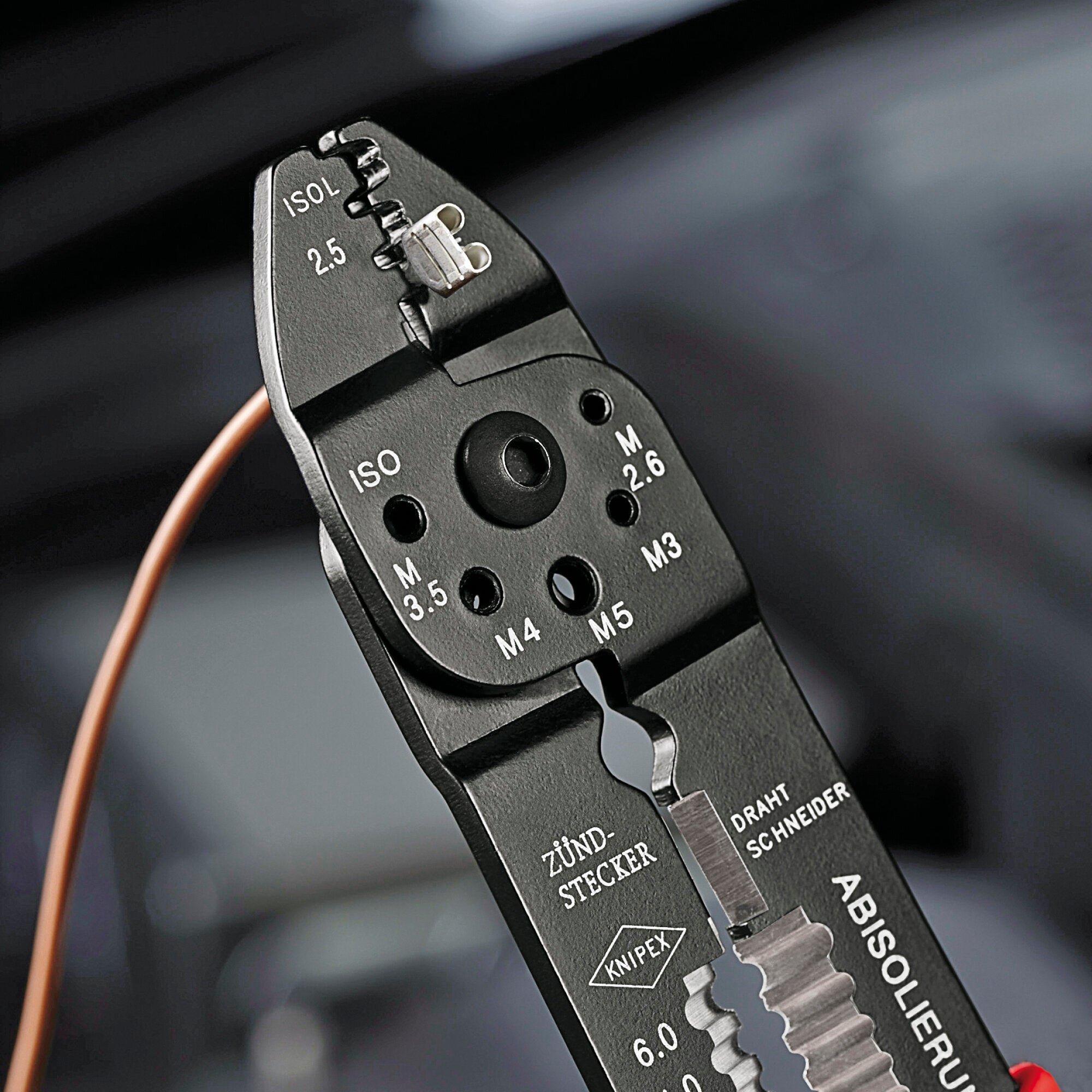 - For cutting cables, stripping wire and crimping insulated terminals and cable connectors