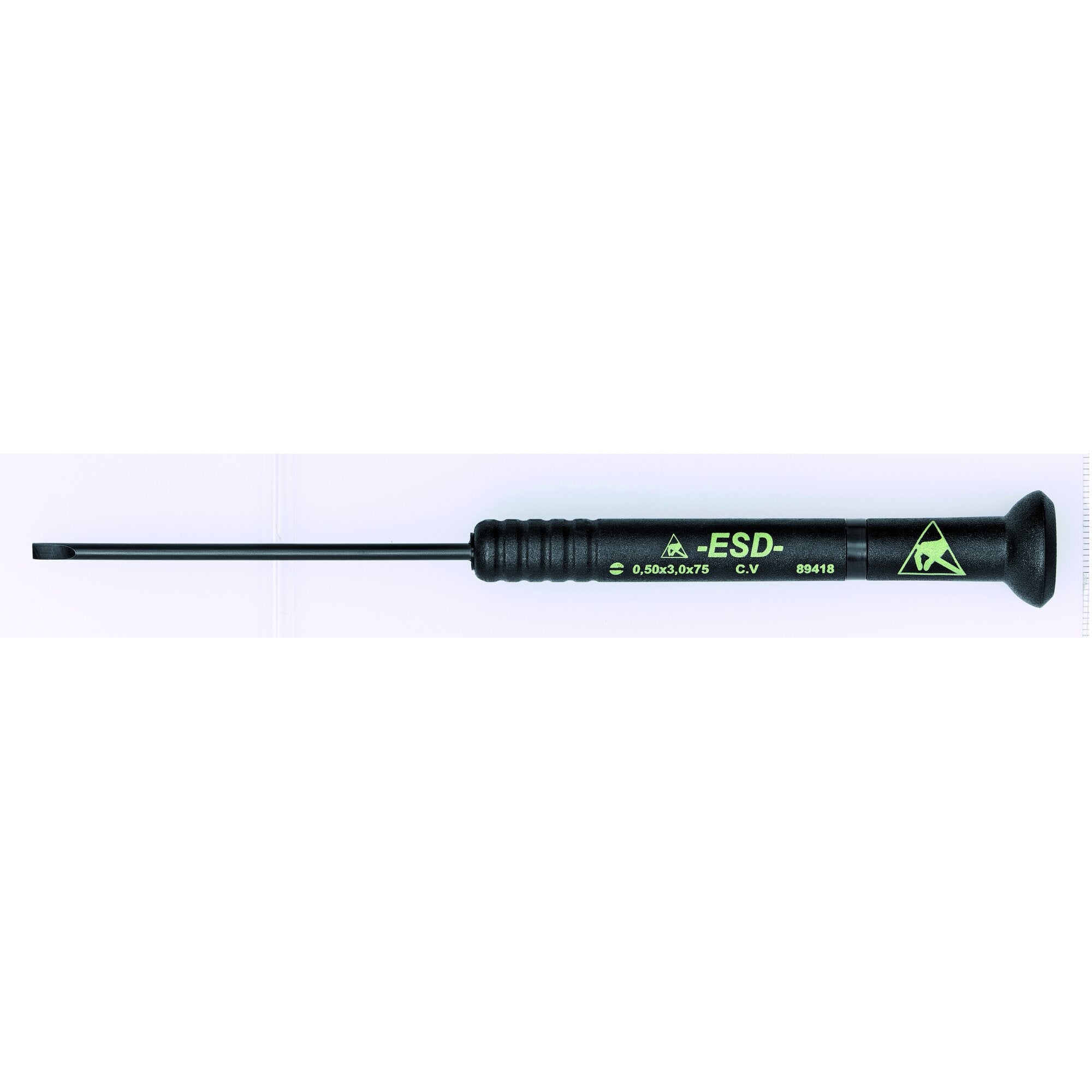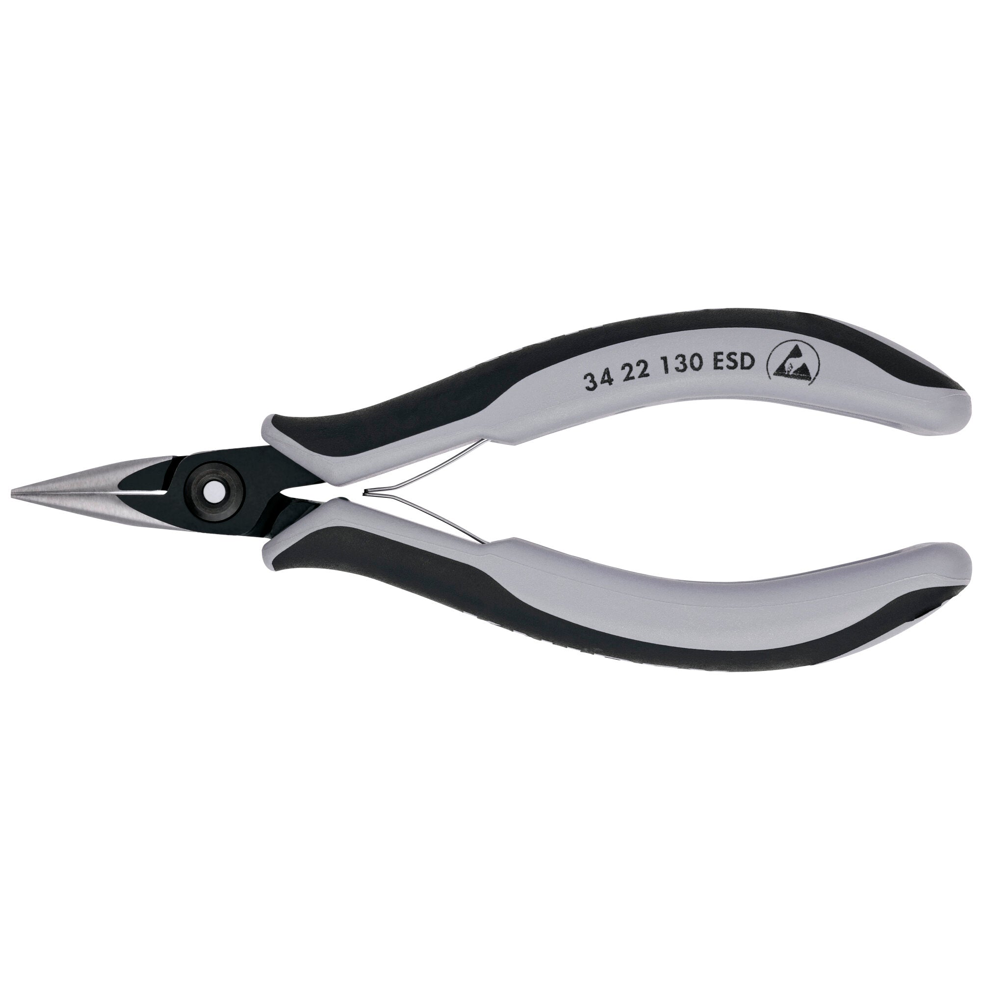 The KNIPEX Electronics ESD Pliers Set is a specially designed collection of pliers that feature electrostatic discharge (ESD) handles. Offering safety and reliability, this electronics pliers are ideal for working with sensitive electronic components. ESD (electrostatic discharge) handles discharge electrostatic energy through the handles in a gradual and controlled manner which protects components endangered by electrostatic discharge. Set includes Half Round Tips Electronics Pliers, Electronics Diagonal Cutters and WITTRON ESD screwdrivers in a zipper pouch. 34 22 130 ESD - 5 1/4" Electronics Pliers-Half Round Tips, ESD Handles. Approximately 20% lighter than conventional electronics pliers. Used for gripping, holding and bending. Double spring for a gentle and even opening. 79 02 125 ESD and 79 22 125 ESD - 5" Electronics Diagonal Cutters-ESD Handles. Precision pliers for ultra fine cutting work in electronics and fine mechanics. Very precisely ground and sharp cutting edges with very small bevels for precise cutting work on small electronic components. Approx. 20% lighter than conventional electronics pliers. 9T 89418 - 6 3/4" WITTRON ESD 3" Slotted, 3.0mm Tip and 9T 89433 - 6 1/4" WITTRON ESD 2" Phillips, #0. Prevention of damage caused by electrostatic discharge. Screwdriver handles made from a special, highly conductive material. Fast turning zone with channels to prevent slipping.