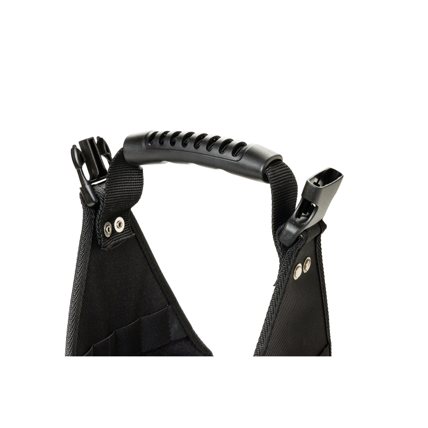 - 3-Compartment tool tote consists of 25 pockets for tool storage