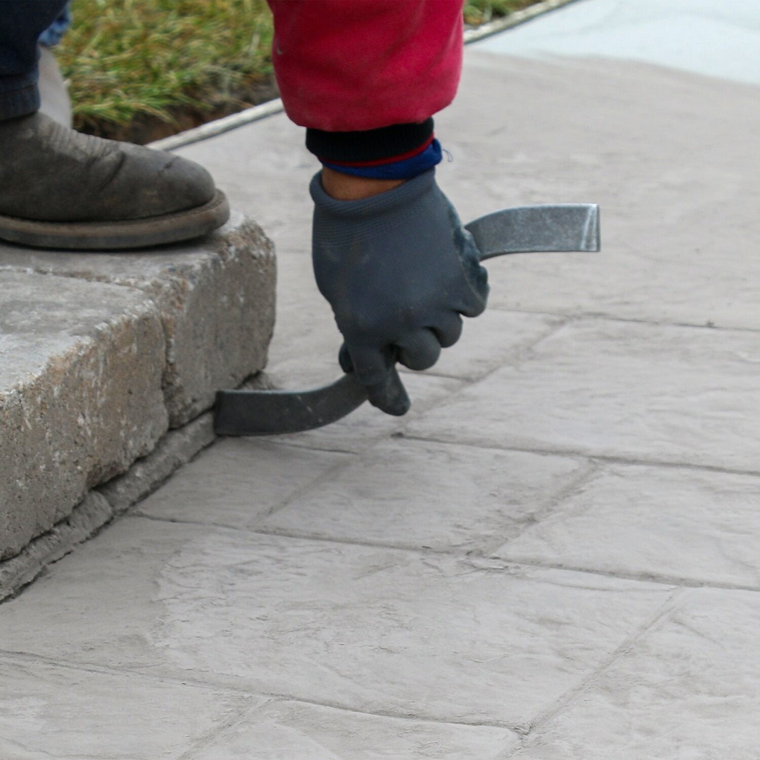 Use this tool to make a V-shape joints in concrete. Creates a consistent vee joint every time. One end makes a 3/16" joint, then flip it around for a 1/4" joint. Formed high quality aluminum for lightness and durability. The shape of the tool provides knuckle clearance as you move along the joints. Use in conjunction with texture mats for touch-ups or cutting small grooves. A must have tool for every decorative finisher. The overall length of the tool is 12" long.