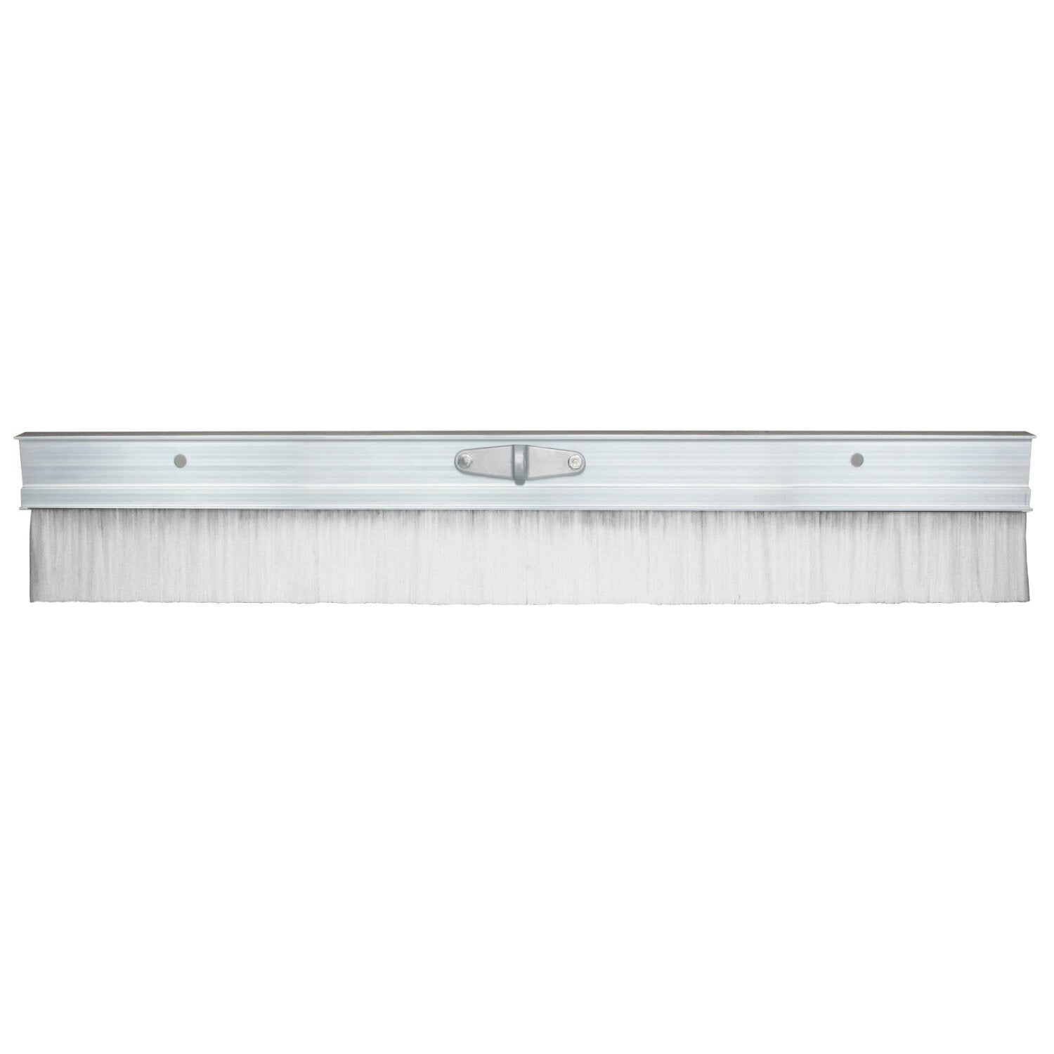 Brush down new concrete after floating with this lightweight aluminum broom. Popular for finishing sidewalks and driveways or wherever a finish with some traction is desired. The 3-1/8" extra soft white poly bristles are epoxy set for long wear and durability. The white bristles are great to use on white concrete when to avoid an errant bristles from getting into the material. The 36" extruded aluminum provides a sturdy long-wearing base for the bristles. A clevis handle bracket is included and attaches to the broom. Use it with clevis style handles, or attach a threaded or button bull float handle adapter for more versatility and a longer reach across the cement slab. Add Kraft Tool's Flipper Tilt Bracket (CC496) can be attached to maximize your range of motion, sold separately. Hang holes along the top provide easy storage for your broom.