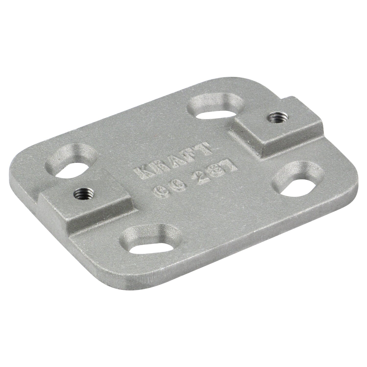 Use this cast aluminum converter plate to convert a 4-hole bracket mount to a 2-hole mount for more versatility. The 5 In. x 4 In. plate fits most standard bull floats. Use this plate to attach the Kraft Tool Co.® EZY-Tilt® Bracket (#CC290) to 4-hole bull floats. Hardware is not included.