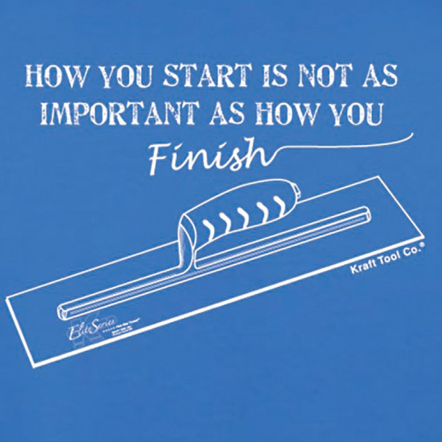 Blue T-Shirt - XL Show your Kraft Tool pride! Bright blue shirt with white logo on front "How You Start Is Not As Important As How You Finish" and trowel image in white on the back.