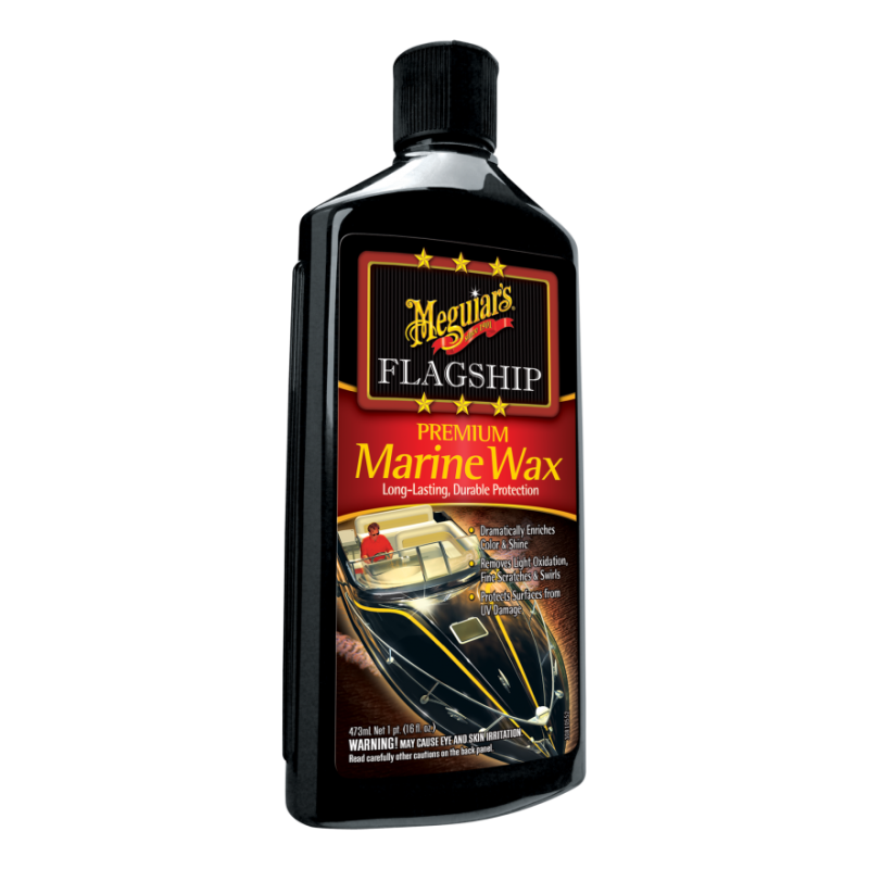 Meguiar's® Flagship Marine Paste Wax dramatically enriches the color and shine of fiberglass and gel coat surfaces. It's effective in removing light oxidation and dullness, restoring gloss, and adding protection from UV damage. *Use wax only after the surface has been cleaned and restored to a "like new" or "average" finish.
