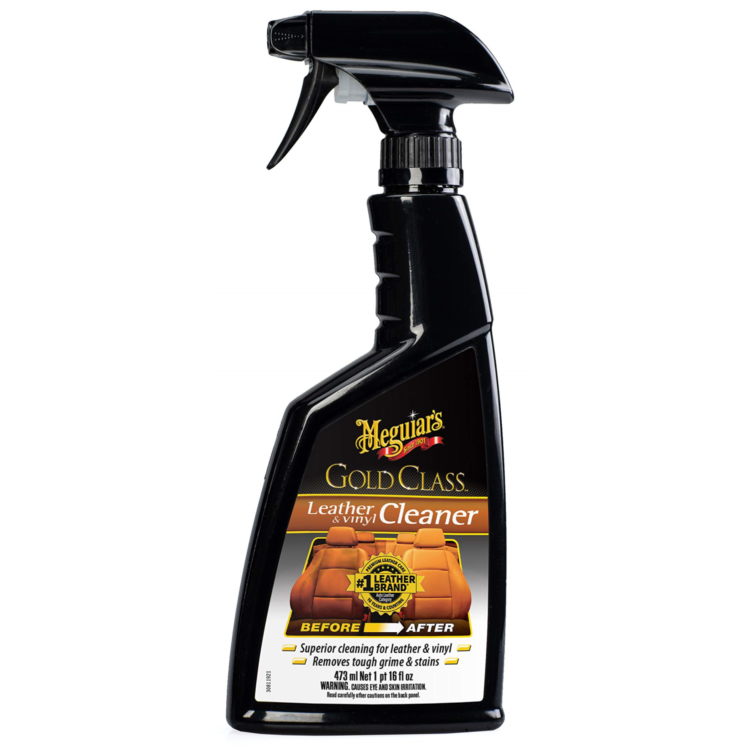 Meguiar's® Gold Class Leather & Vinyl Cleaner is a quick solution to clean all leather and vinyl surfaces. Unlike harsh chemical cleaners that strip the leather's natural life-extending oils, this easy-to-use formula will remove stains as well as provide a revitalized appearance to leather & vinyl surfaces. A great first step for cleaning before applying Meguiar's® Gold Class Leather Conditioner to condition and protect leather surfaces and keep them soft and "like-new".