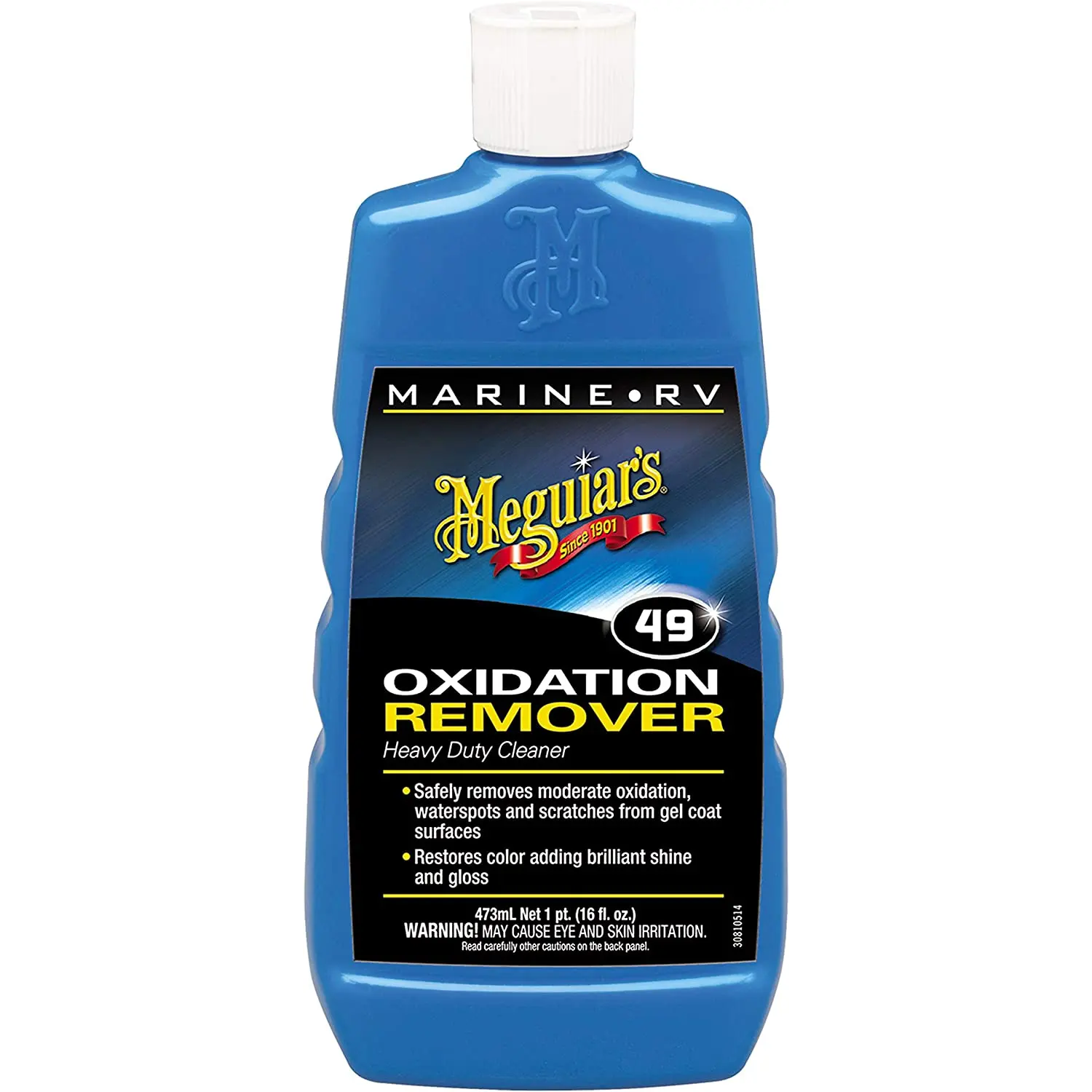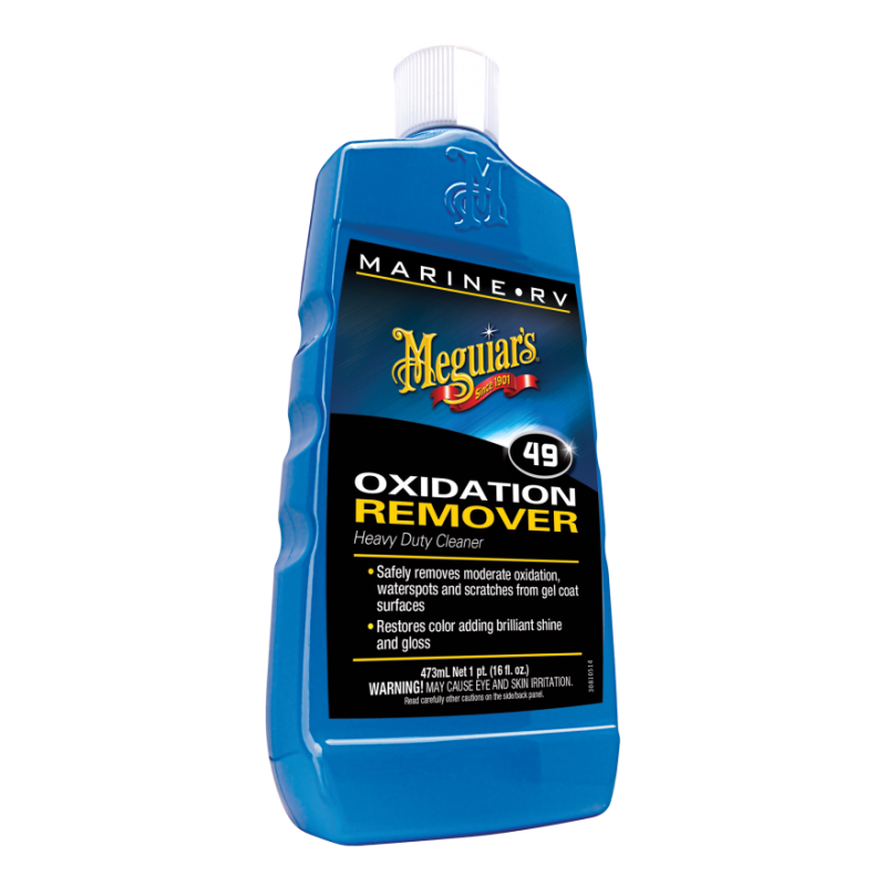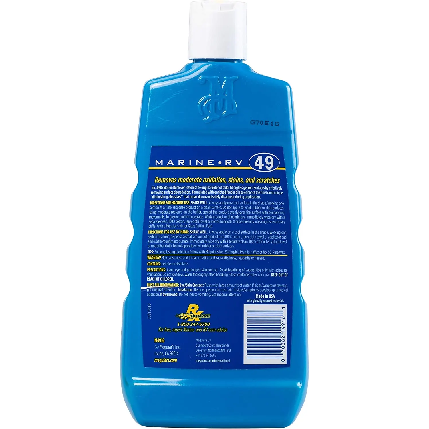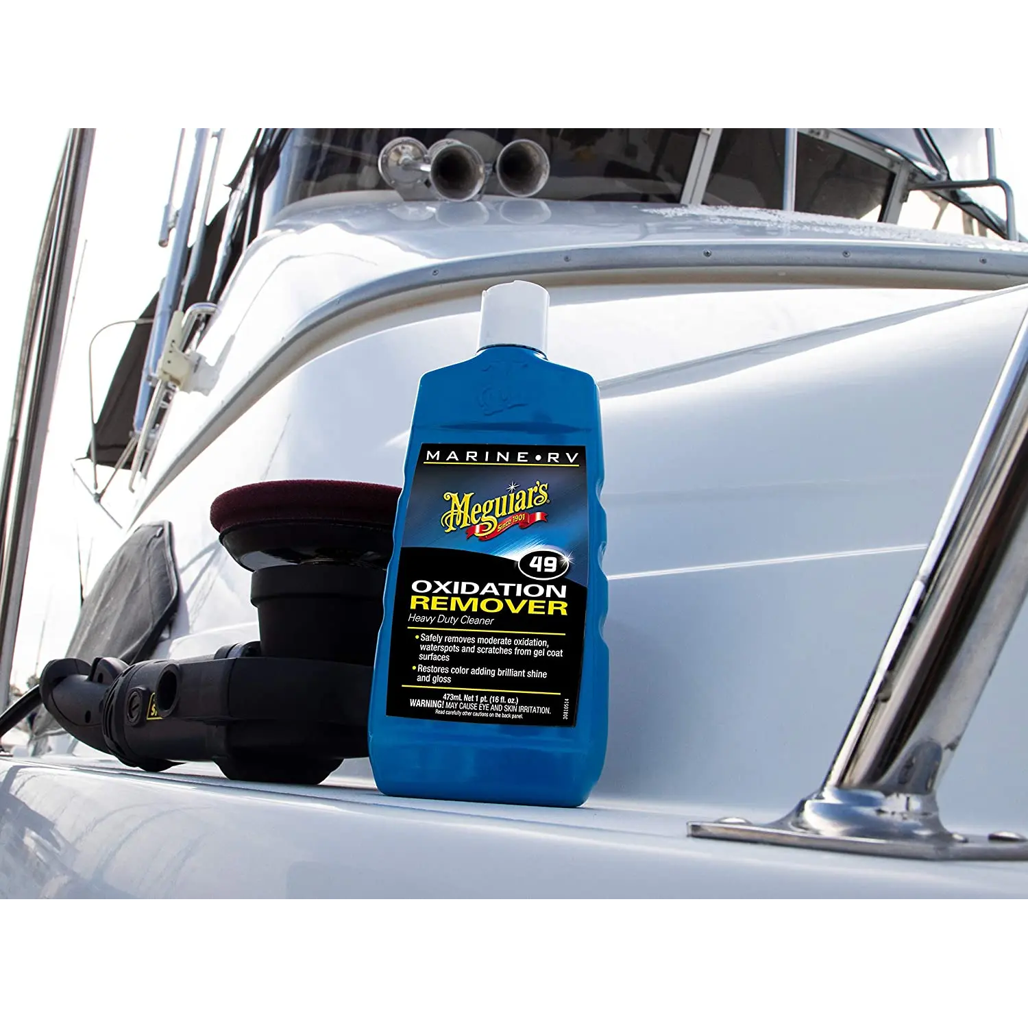Meguiar's® Marine/RV Oxidation Remover restores the original color of older fiberglass gel coat surfaces by effectively removing surface degradation. Formulated with enriched feeder oils to enhance the finish and unique diminishing abrasives that break down safely and disappear during application. Ideal for safely removing moderate oxidation, stains and scratches from gel coat and fiberglass surfaces.