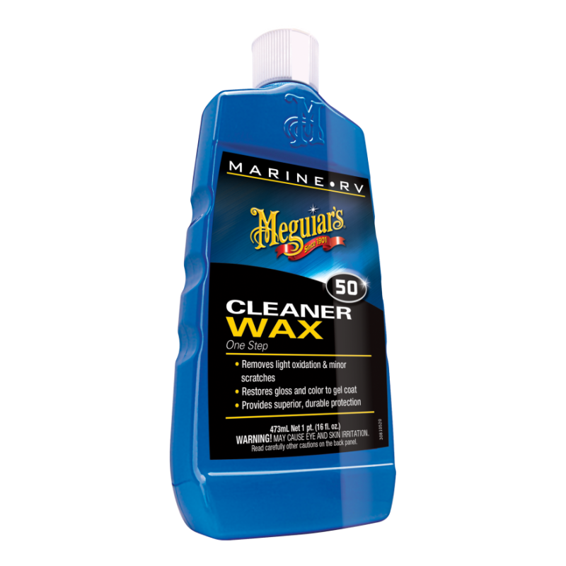 Meguiar's® Marine/RV Cleaner Wax Liquid has a non-abrasive formula that cleans, polishes and protects all boats and RVs in one easy step. Light oxidation and haze, minor scratches and swirls are all removed, and this cleaner provides long-lasting protection against salt air, corrosion and the sun's ultraviolet rays.