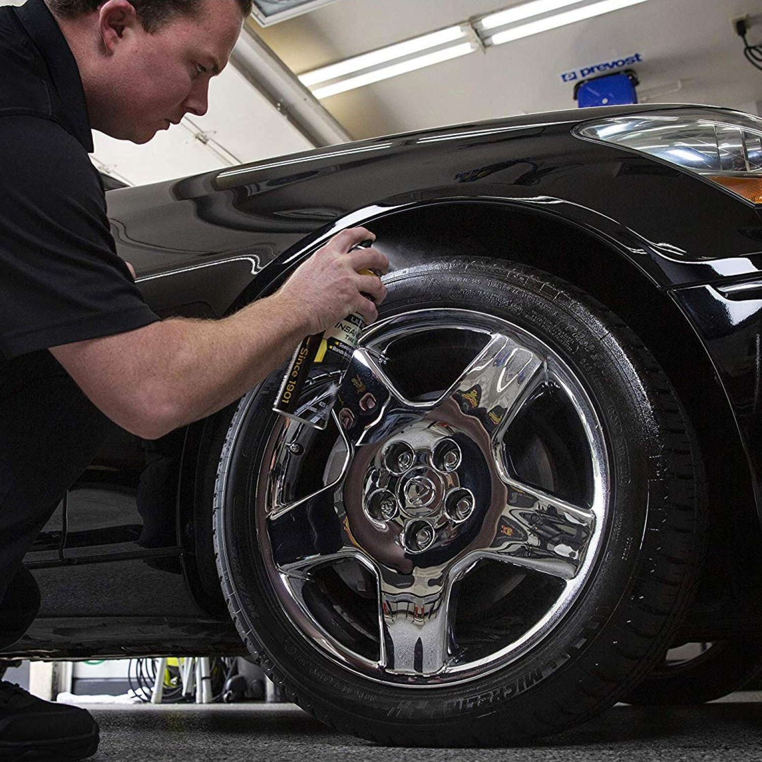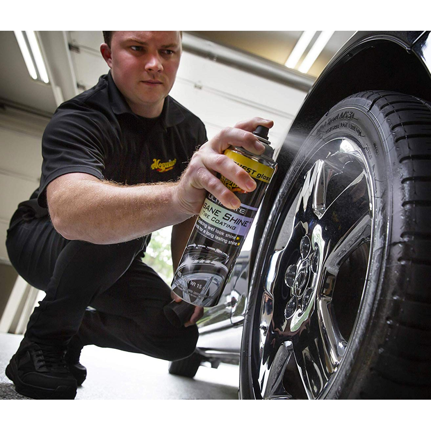 Meguiar’s Ultimate Insane Shine Tire Coating is the highest gloss tire shine Meguiar’s has to offer. With advanced synthetic polymer chemistry this premium aerosol tire shine delivers extreme, attention-grabbing depth with amazing shine and gloss. You won’t believe your eyes as tires will appear like they are actually wet! Our exclusive formula also contains enhanced resin technology producing an amazing bond for a long-lasting finish. Anti-ozonants protect tires against cracking and fading over time while the self-spreading formula is easy to work with reducing streaks and runs. So, if you are looking for a tire coating that offers protection, is easy to use and with a shine that looks like it’s soaking wet, Meguiar’s Ultimate Insane Shine Tire Coating is for you.