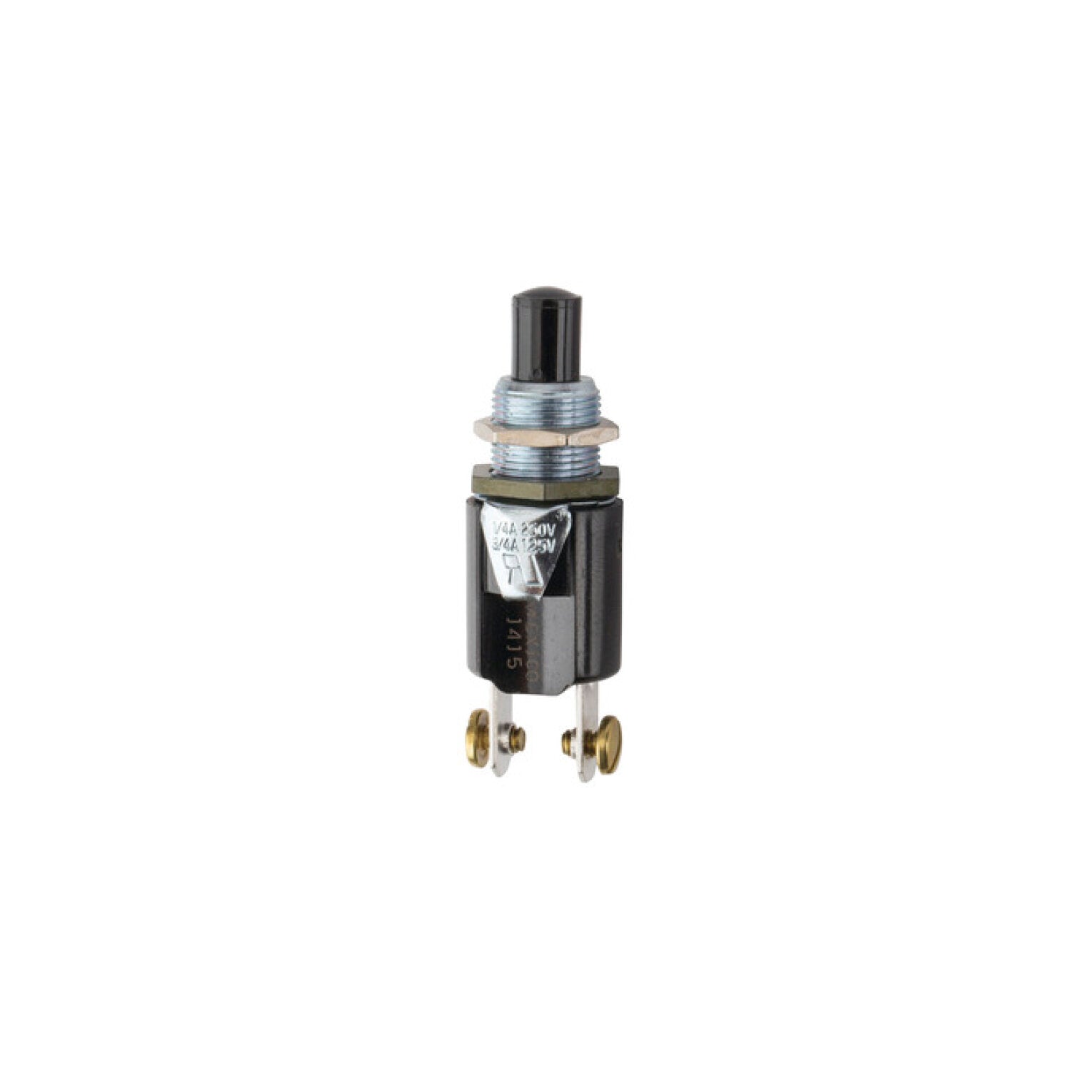 Pushbutton Mom. SPST N.O. 0.75A Off(On) Nylon Screw.