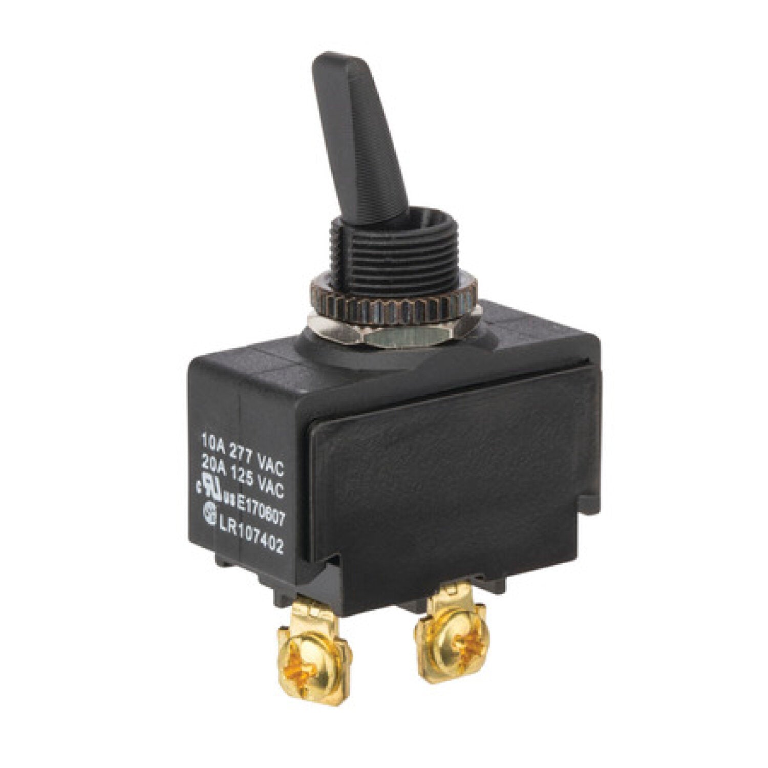 NSI 78015TS Toggle Switch SPST 20 Amps On-Off Circuit Flat Black Screw Connection