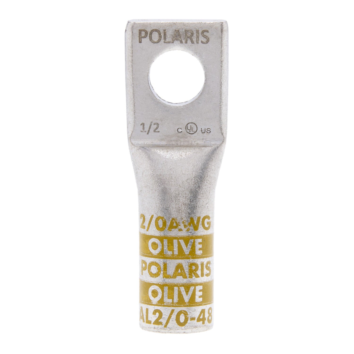 NSI AL2/0-48 2/0 AWG 1/2” 1-Hole Aluminum Long Lug – Olive