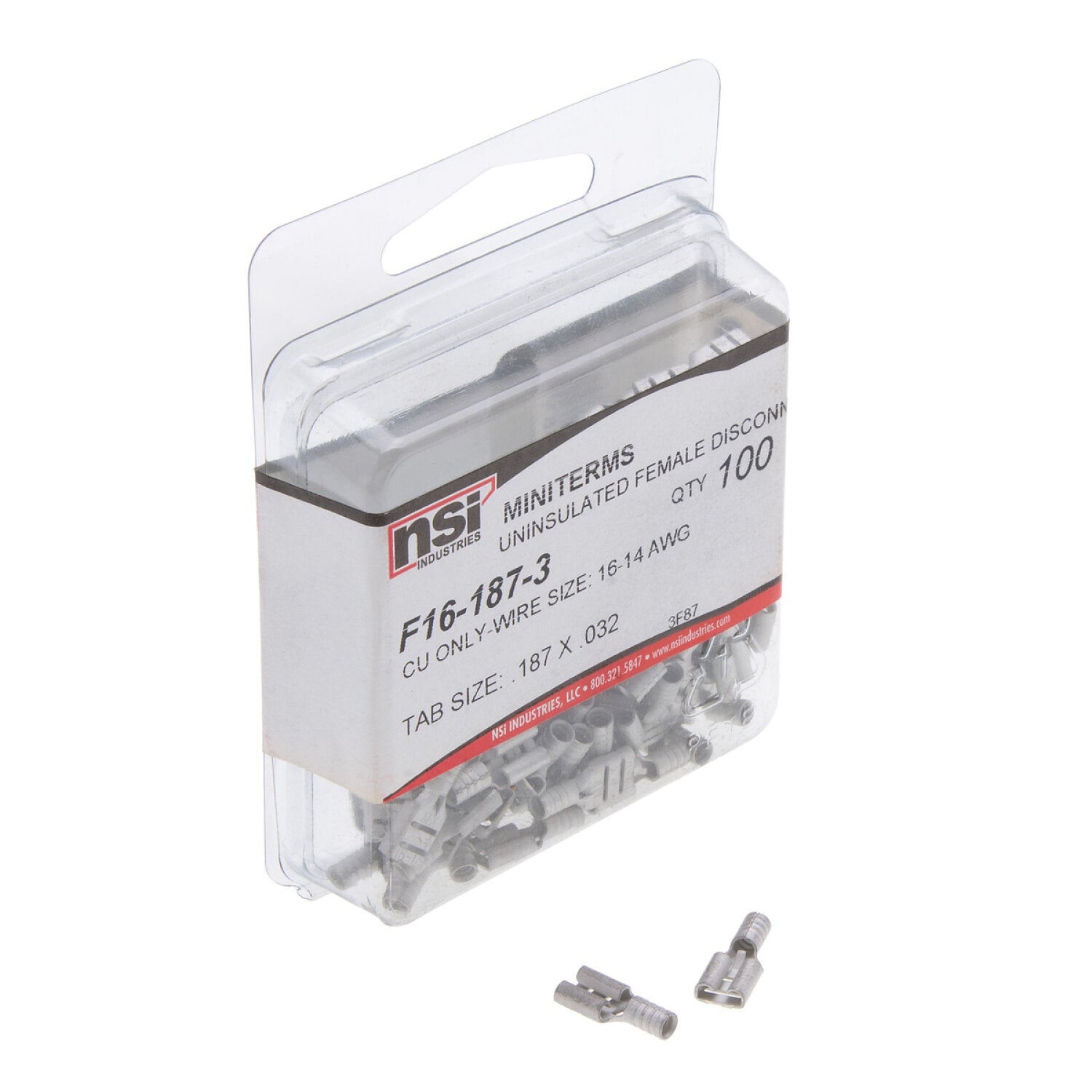 NSI F16-187-3 16-14 Awg Bare Female Disconnect .187X.032 Tab 100/Pack