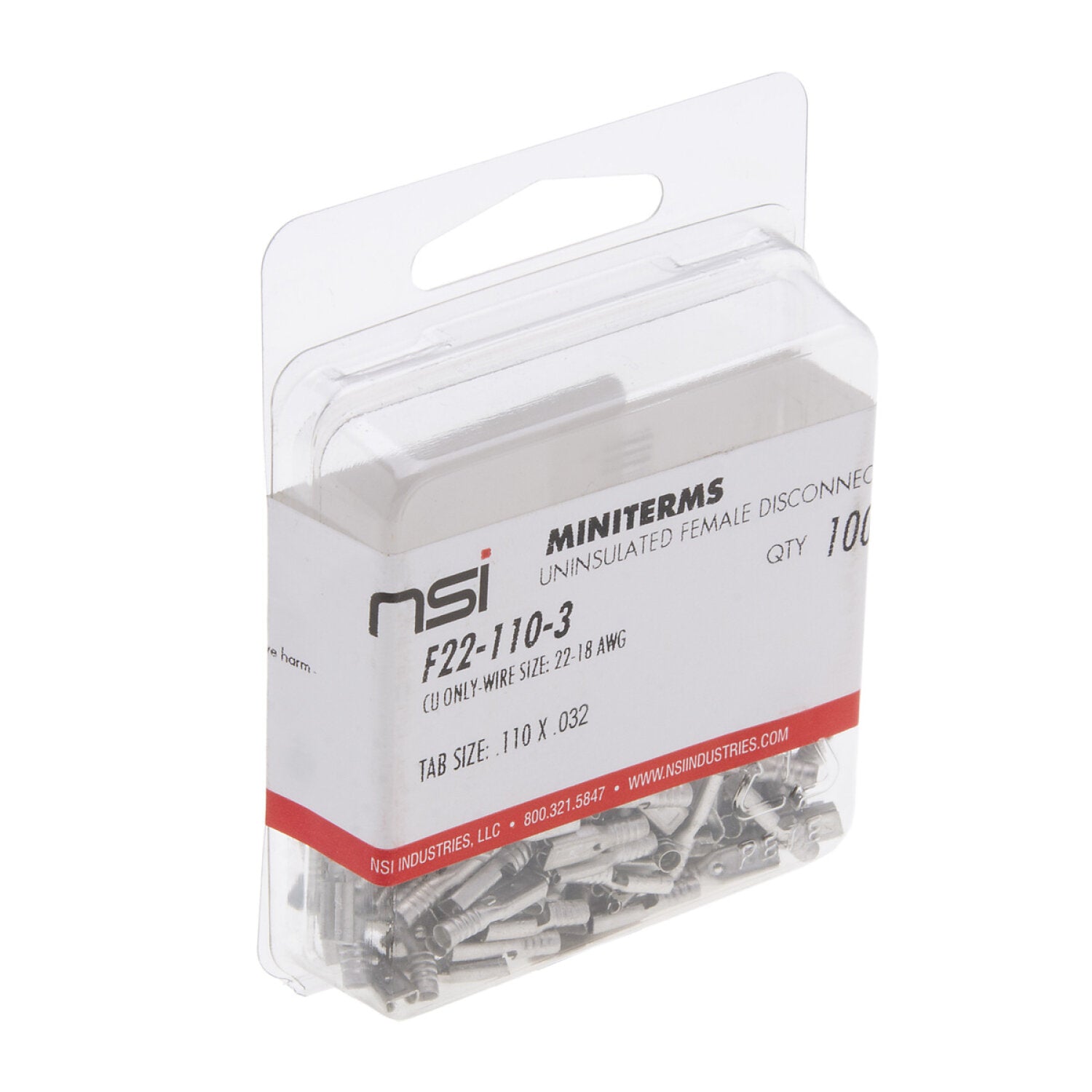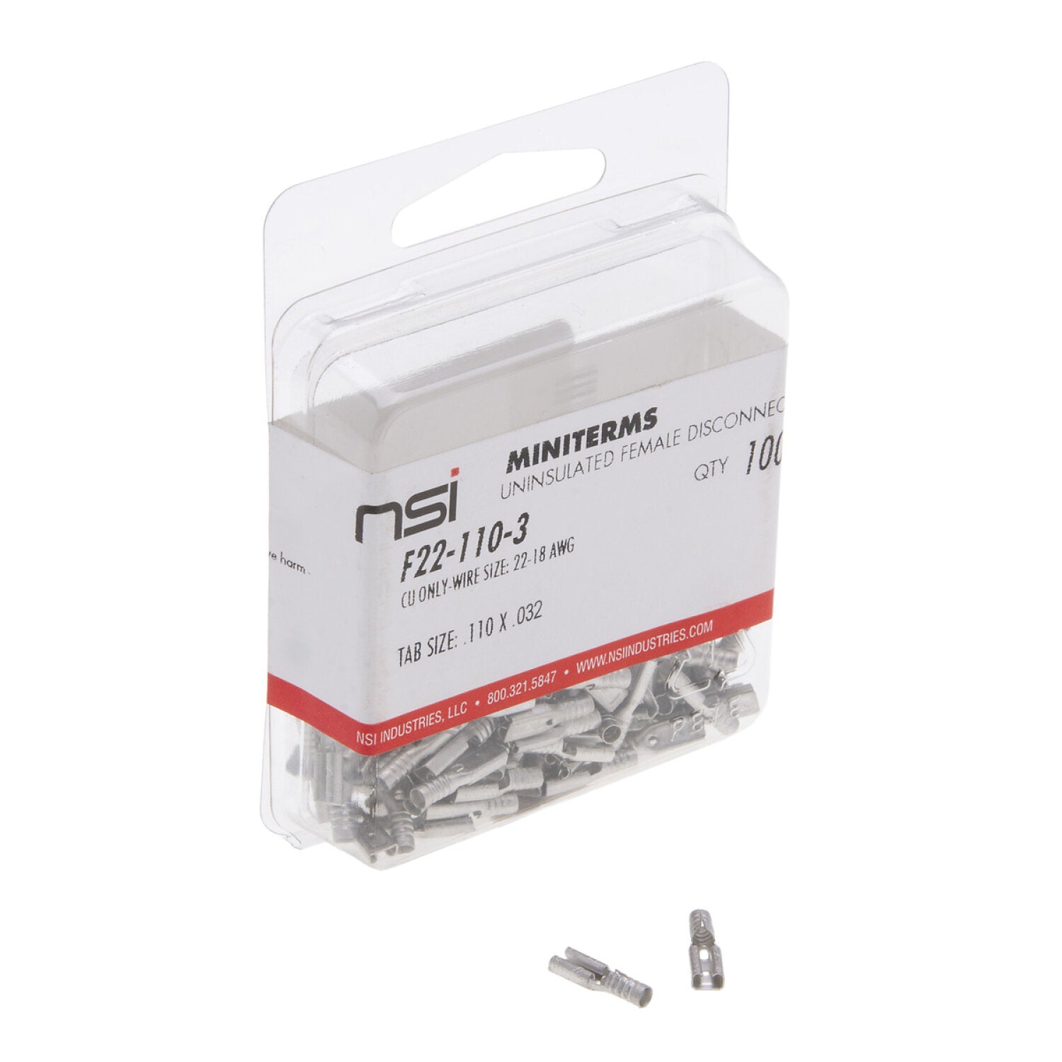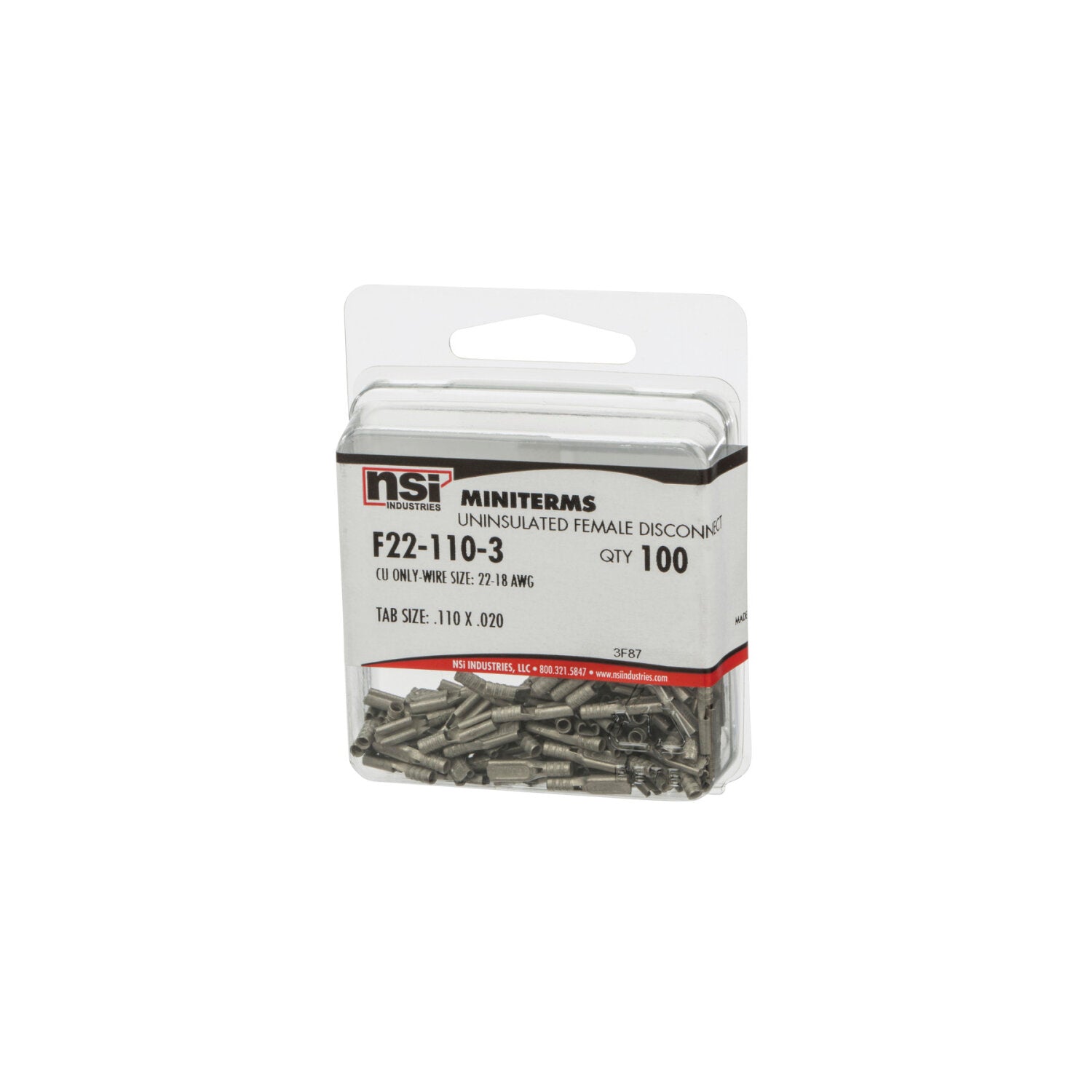 NSI F22-110-3 22-18 Awg Bare Female Disconnect .110X.032 Tab 100 Per Pack.