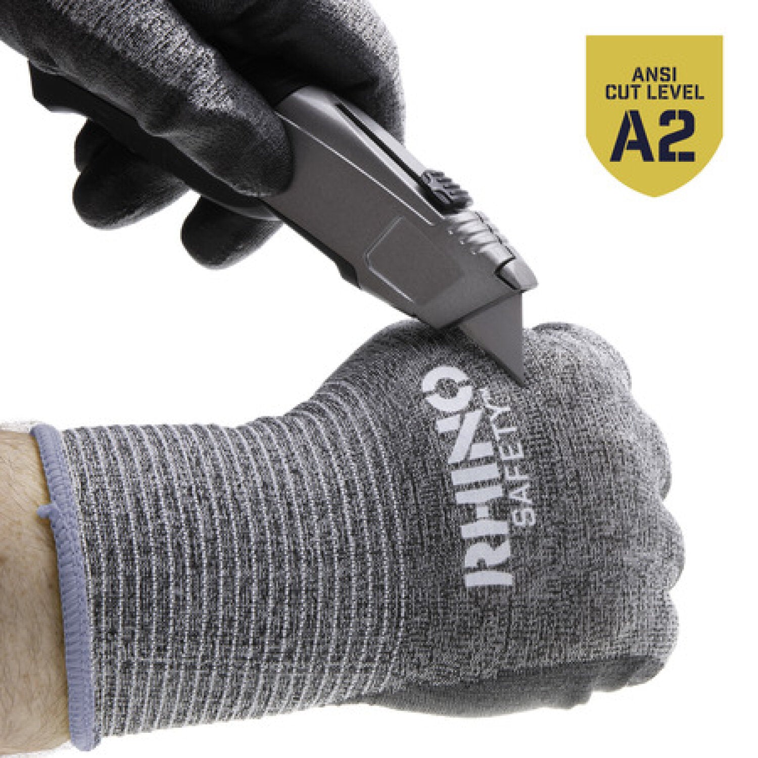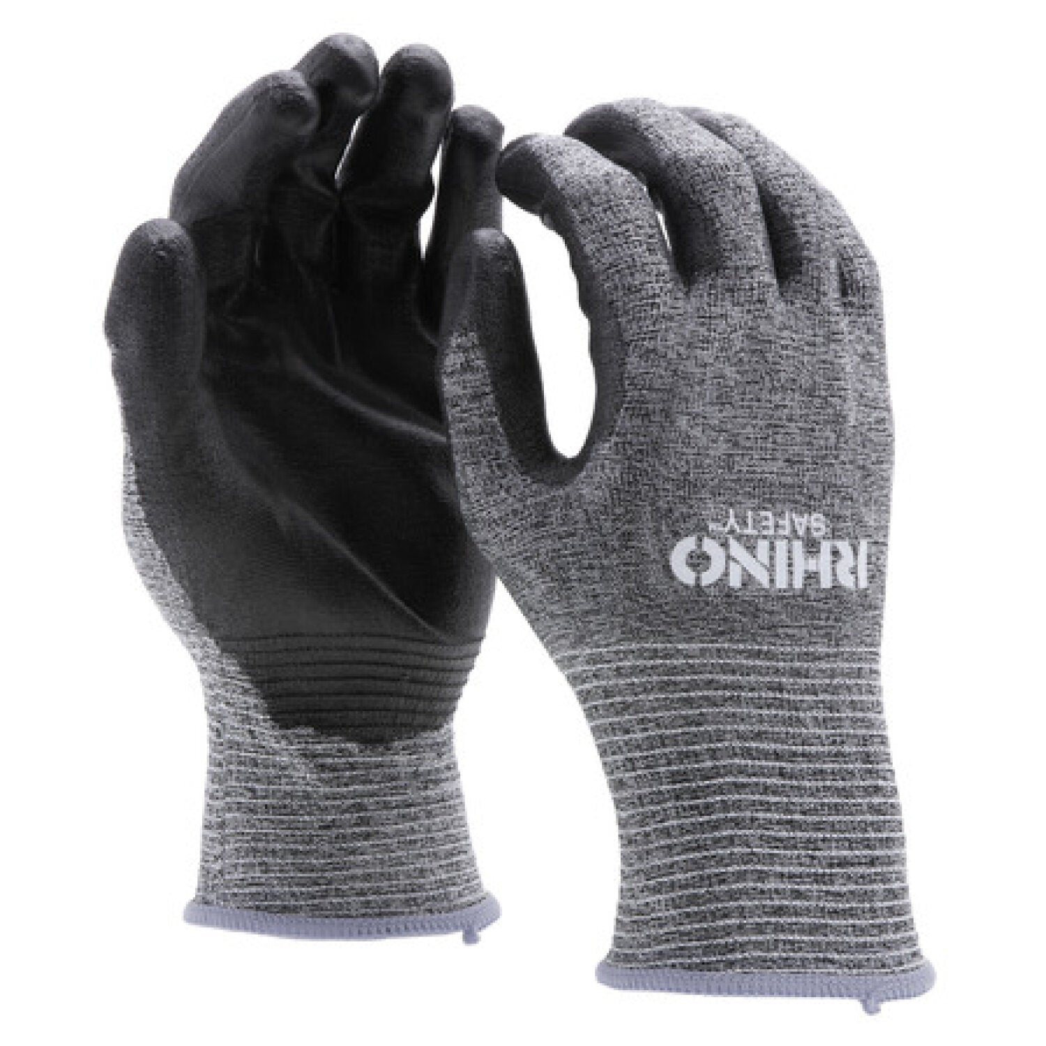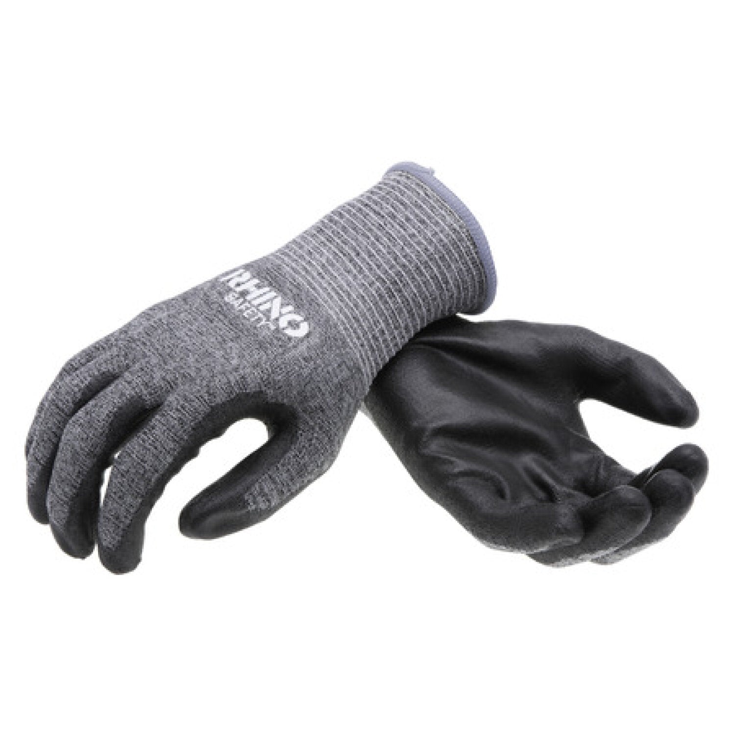 RHINO personal protection equipment provides safety on the jobsite and beyond. These 13-gauge gray HPPE nylon comfortable safety gloves protect your hands and improve your grip, with a palm-dipped polyurethane coating that resists abrasion, oils and chemicals.