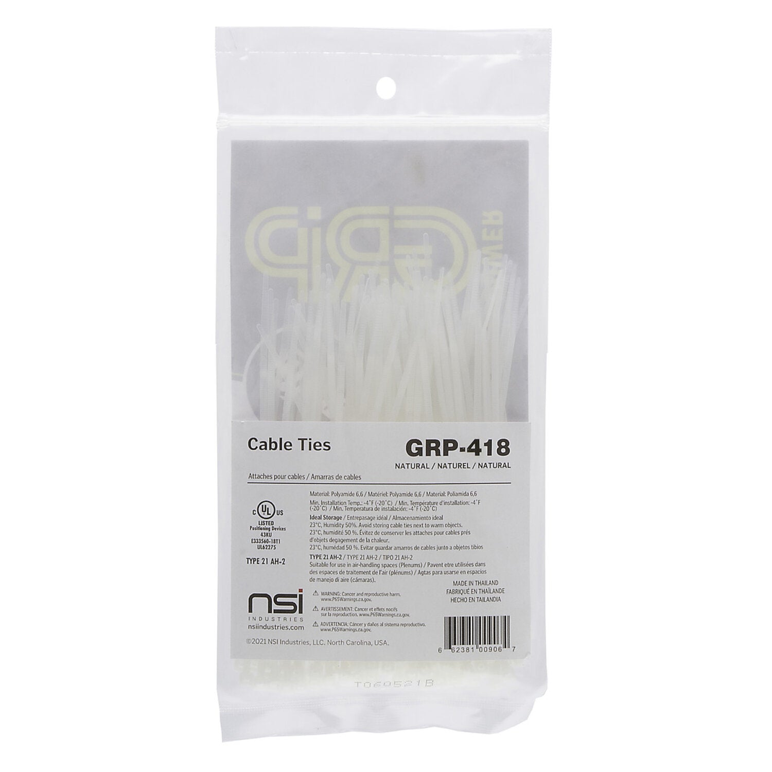 NSI GRP-418 4”, Natural General Purpose 18lb Cable Ties, 100 Pack