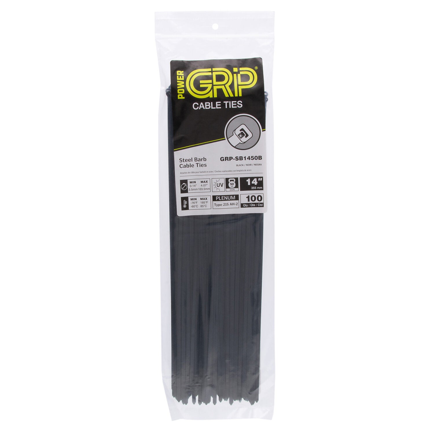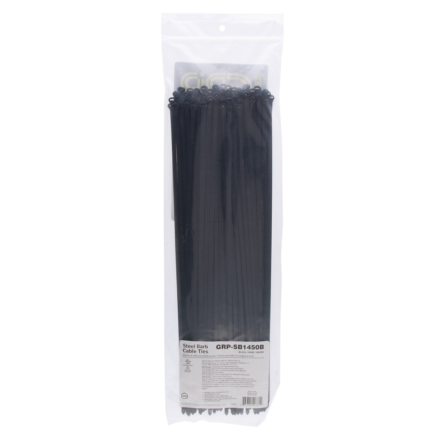 NSI GRP-SB1450B 14”, Black Steel Barb 50lb Cable Tie, 100 Pack