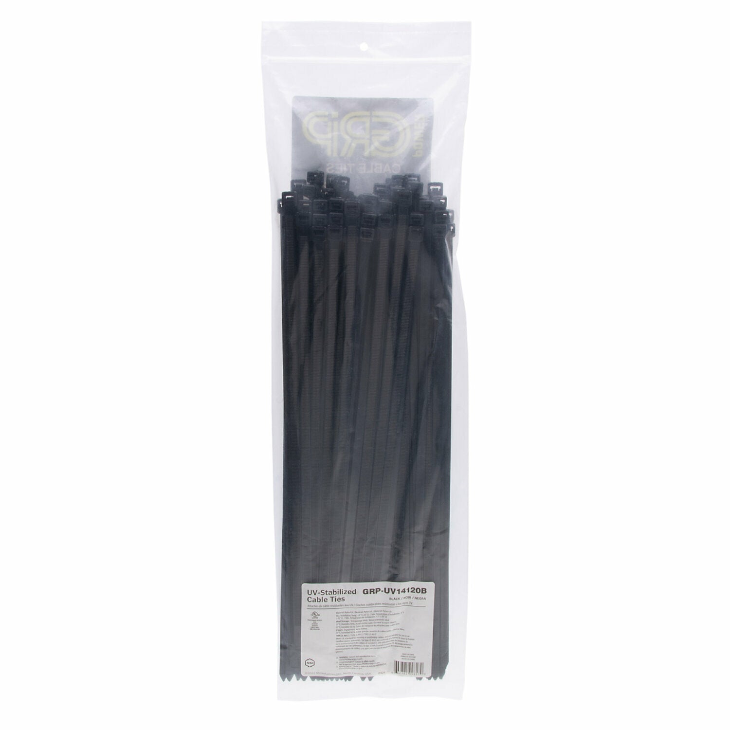 NSI GRP-UV14120B 14” Black UV-Stabilized Heavy-Duty 120lb Cable Ties, 100 Pack
