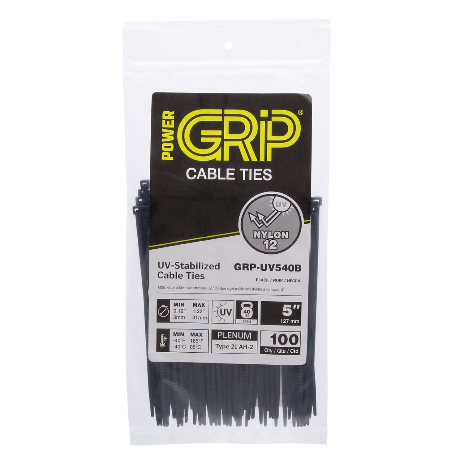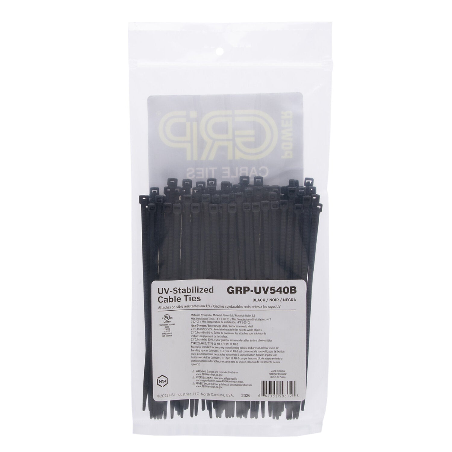 NSI GRP-UV540B 5” Black UV-Stabilized 40lb Cable Ties, 100 Pack
