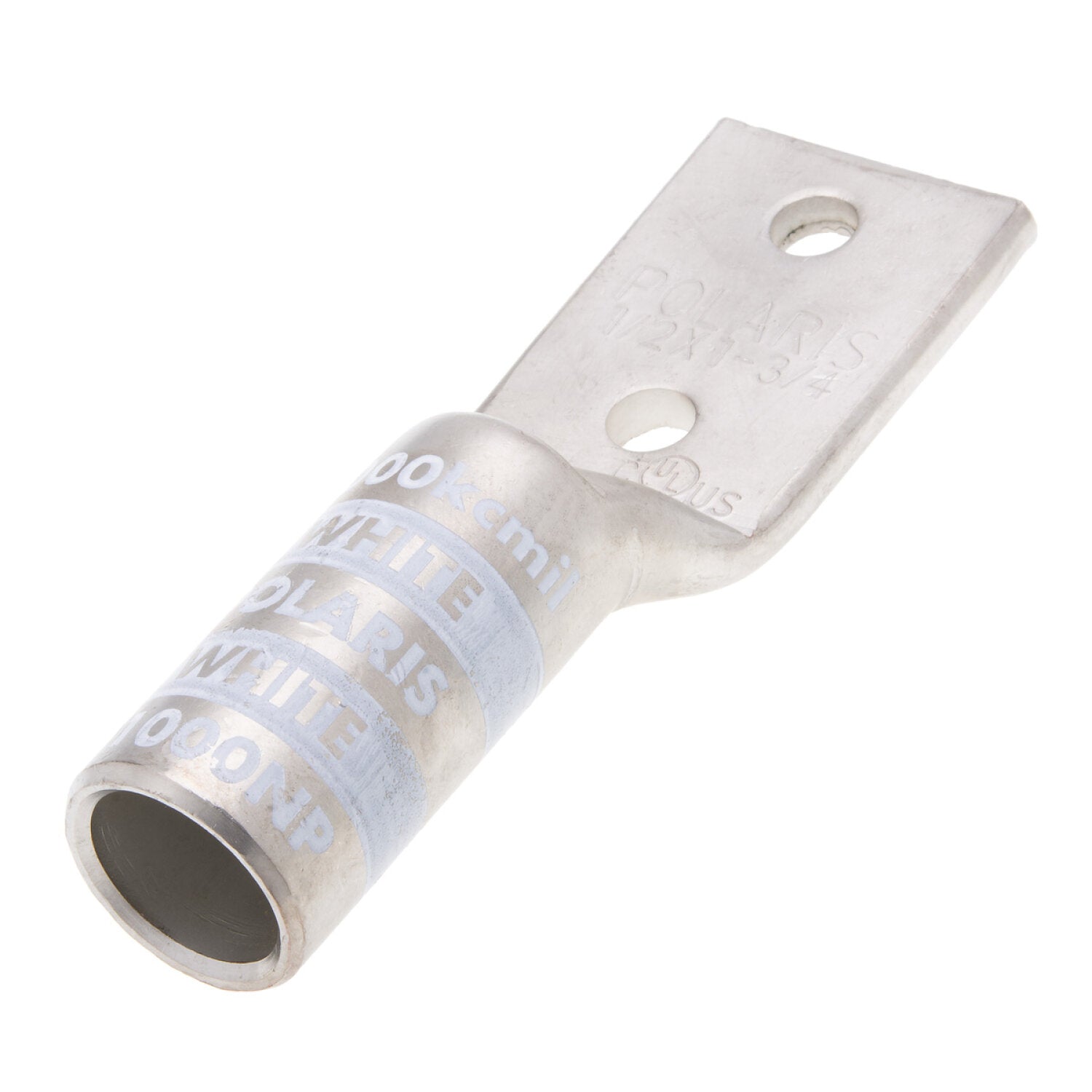 NSI L1000NP 1000 MCM 1/2” 2-Hole Copper Long Lug with Peep Hole – White