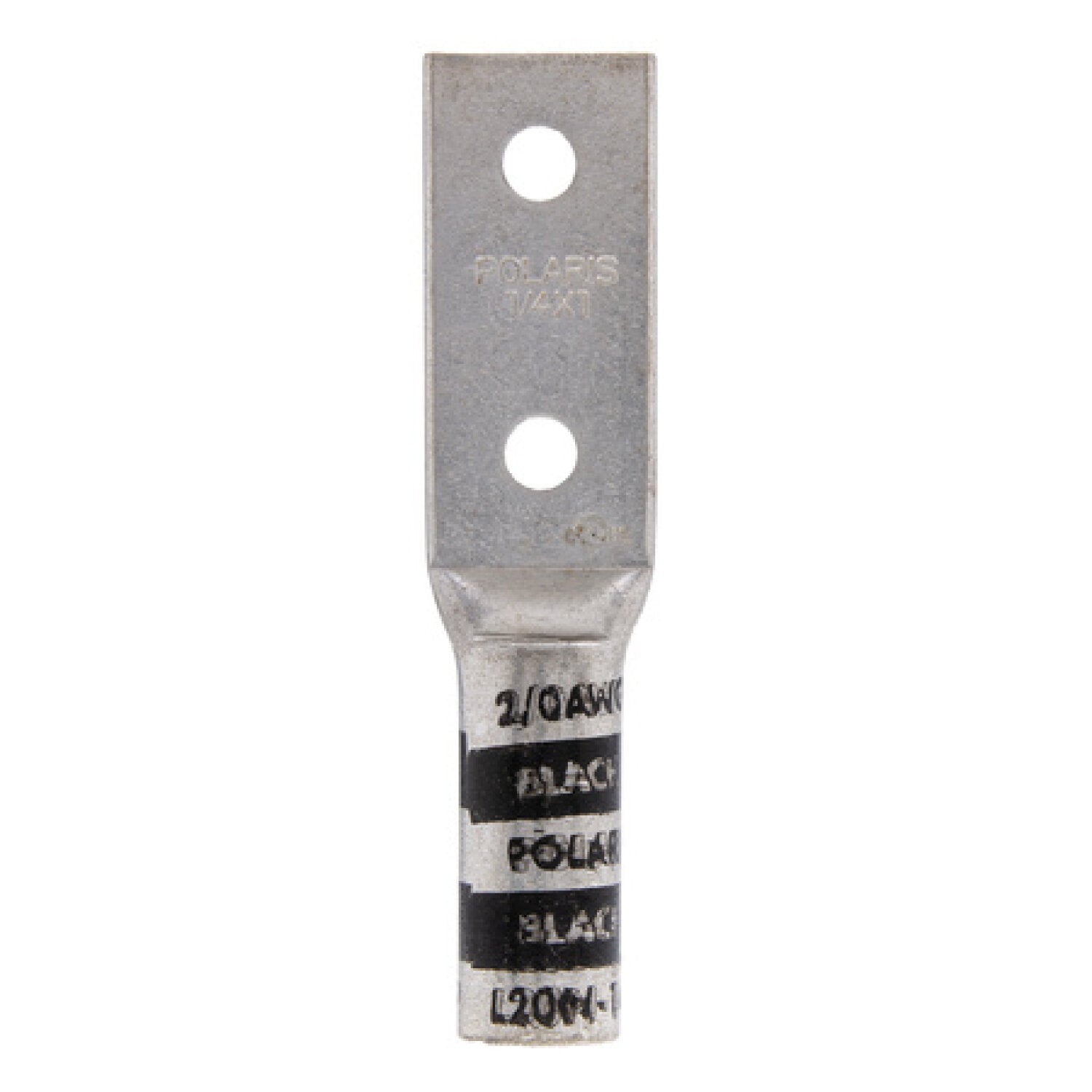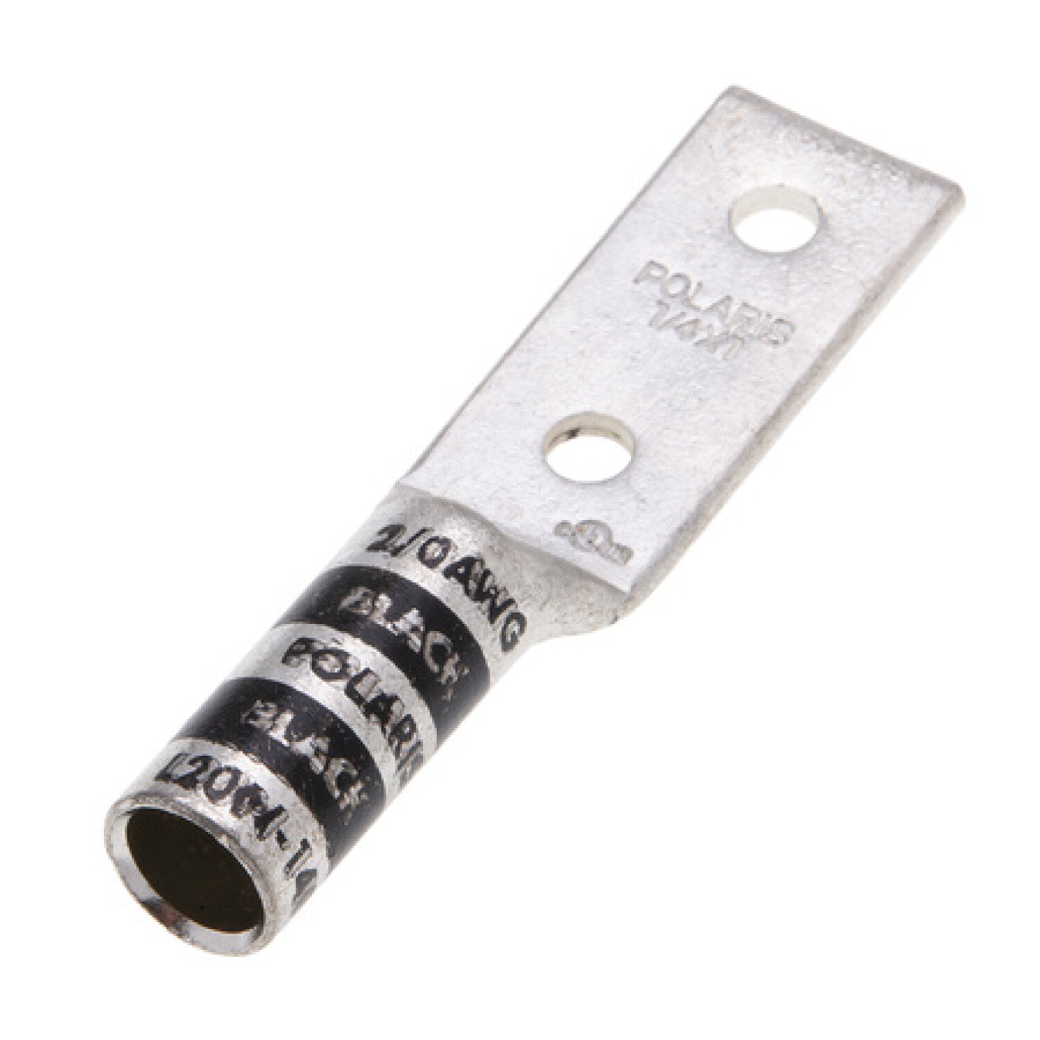 NSI L20N-14P Copper Long Lug with Peep Hole – Black 2-Hole 2/0 AWG 1/4 Inch