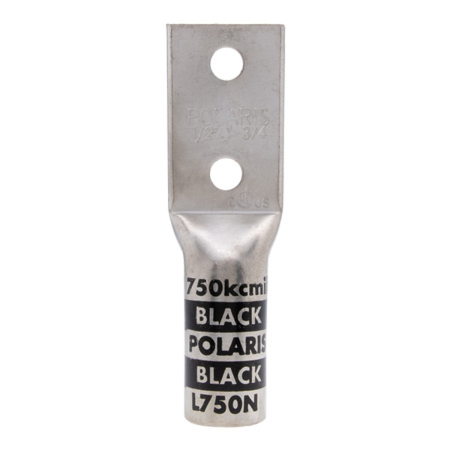 NSI L750N Copper Long Lug – Black 2-Hole 750 MCM 1/2 Inch