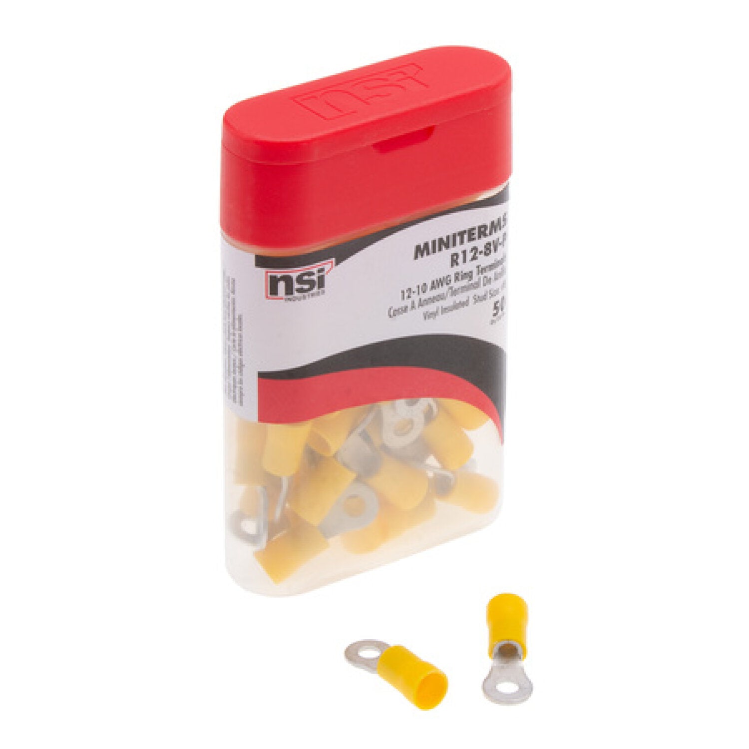 NSI R12-8V-P Wire Terminal Ring Vinyl 12-10 Awg 8 Stud Bottle 50 Pack