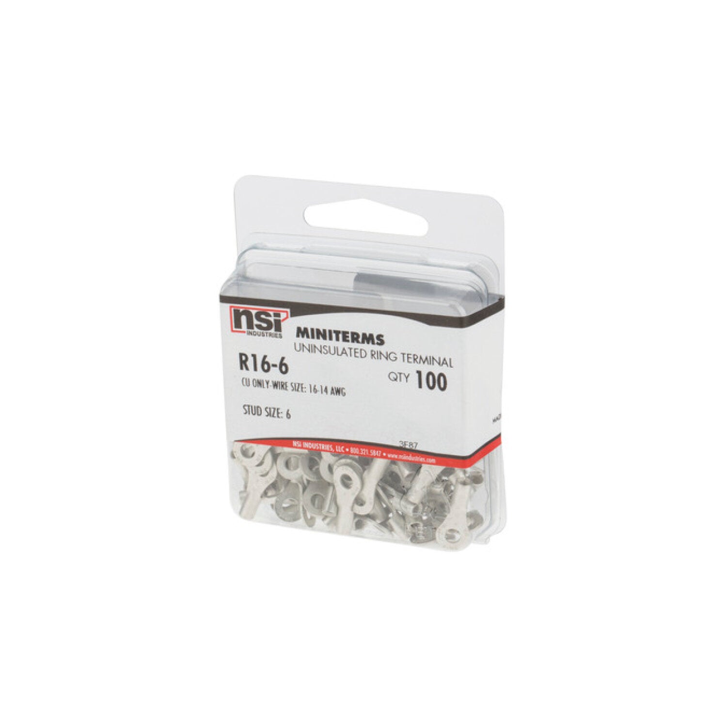 NSI R16-6 16-14 Awg Bare Ring #6 Stud 100 Per Pack