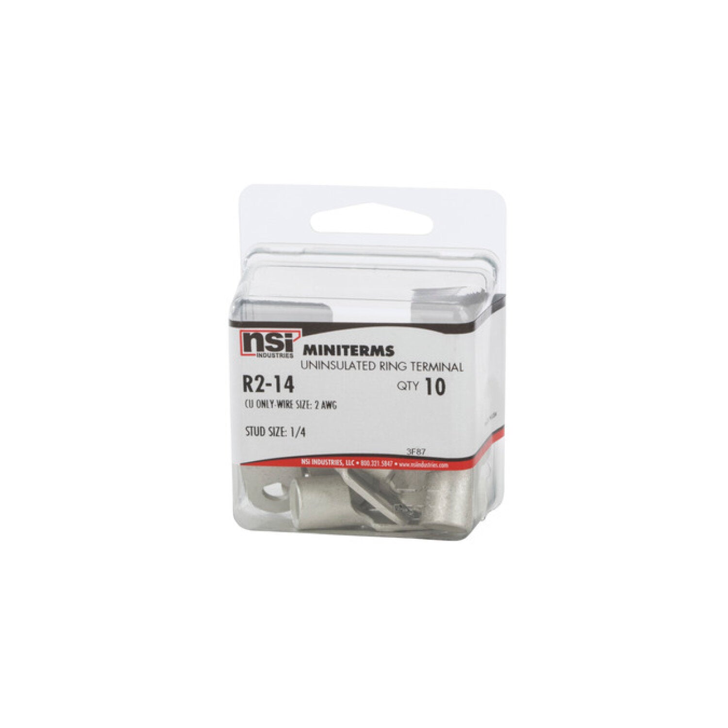 NSI R2-14 2 Awg Bare Ring 1/4" Stud 10 Per Pack