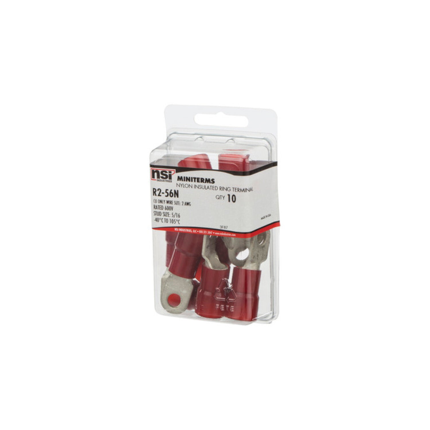 NSI R2-56N 2 Awg Nylon Insulated Ring 5/16" Stud 10 Per Pack