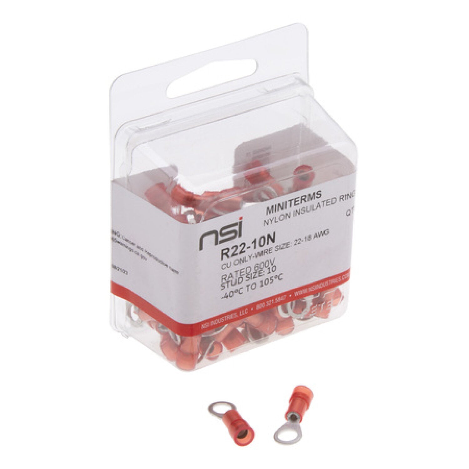 NSI R22-10N 22-18 Awg Nylon Insulated Ring #10 Stud 100 Per Pack