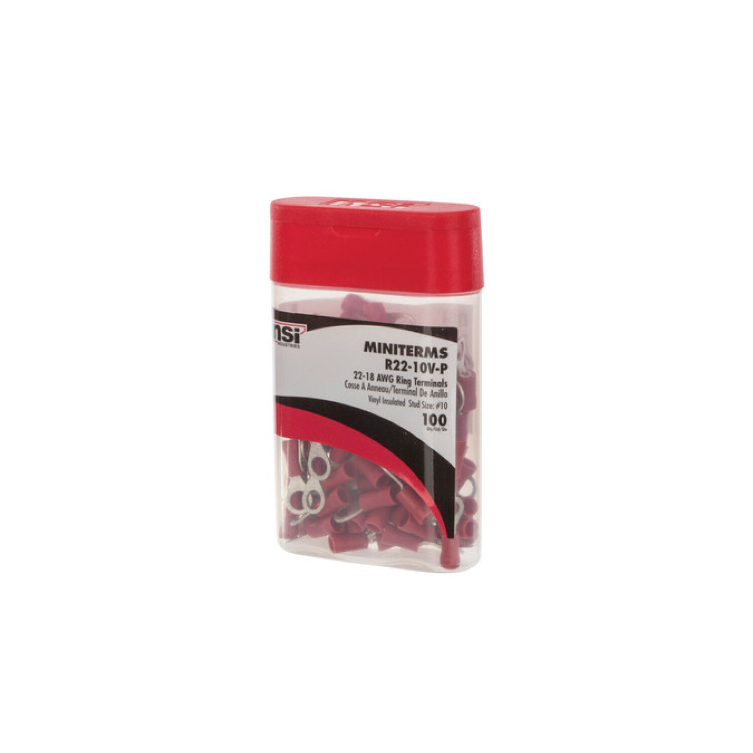 NSI R22-10V-P Wire Terminal Ring Vinyl 22-18 Awg 10 Stud Pro Pack Bottle (100 Ea)