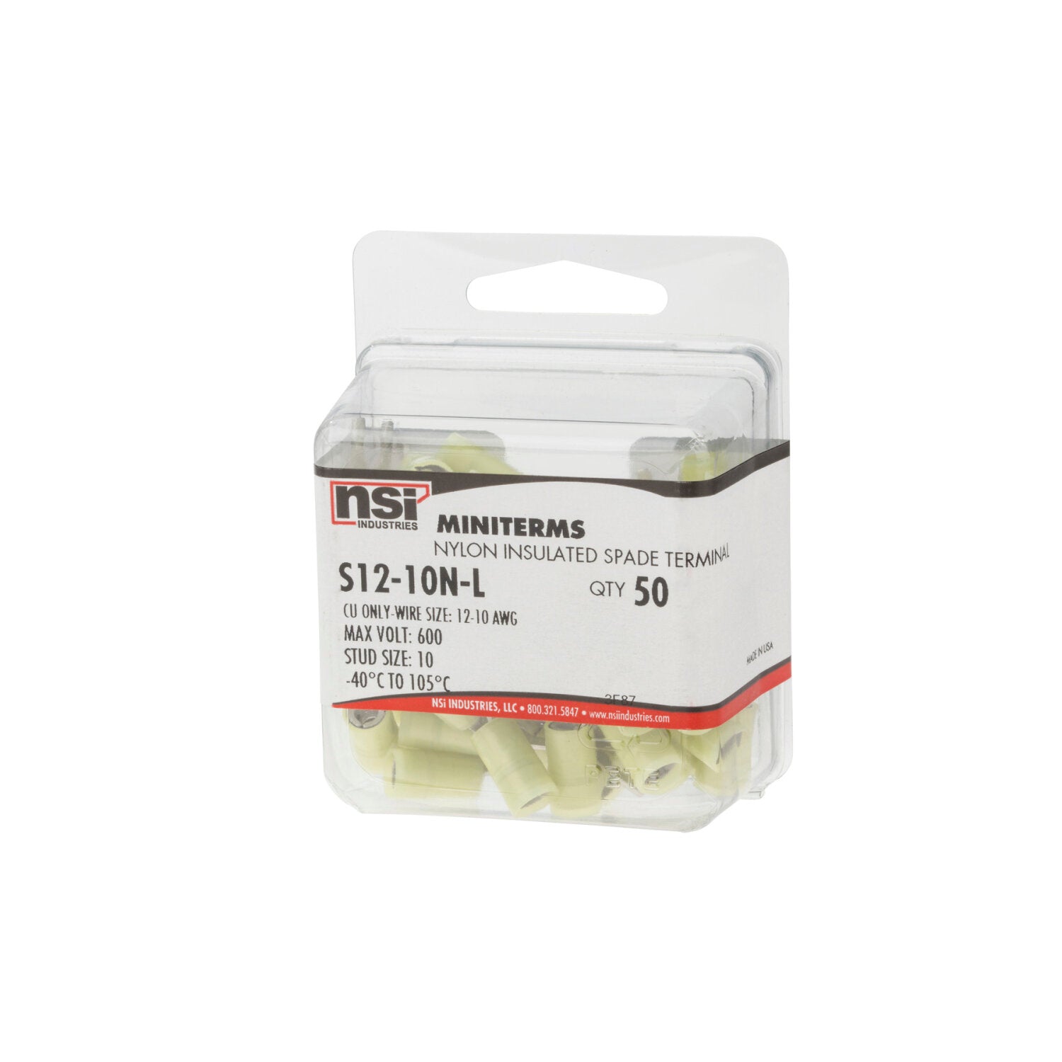 NSI S12-10N-L 12-10 Awg Nylon Insulated Locking Spade 50 Per Pack.