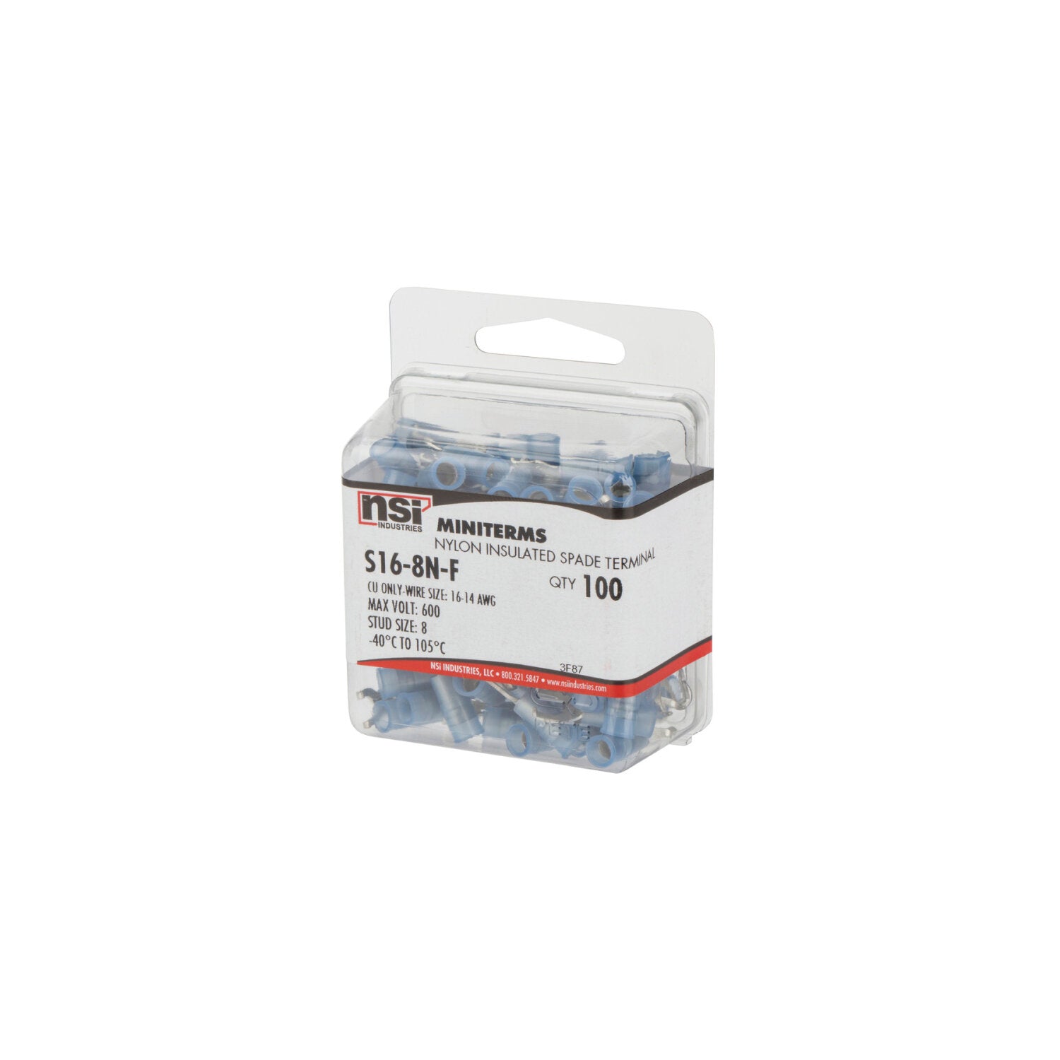 NSI S16-8N-F 16-14 AWG Nylon Insulated Flange Spade 100 Per Pack