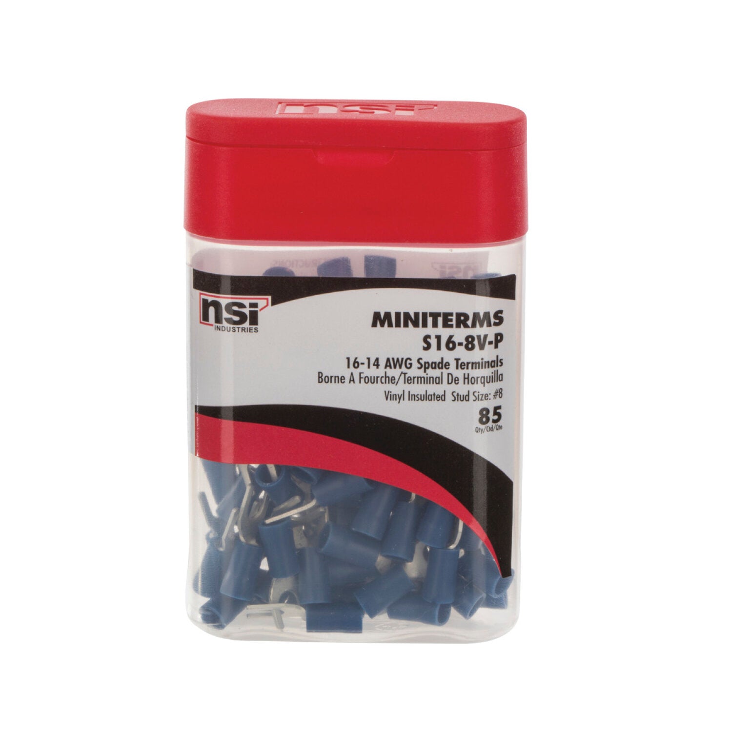 NSI S16-8V-P Wire Terminal Spade Vinyl Insulated 16-14 Awg 8 Pro Pack Bottle (85 Ea)