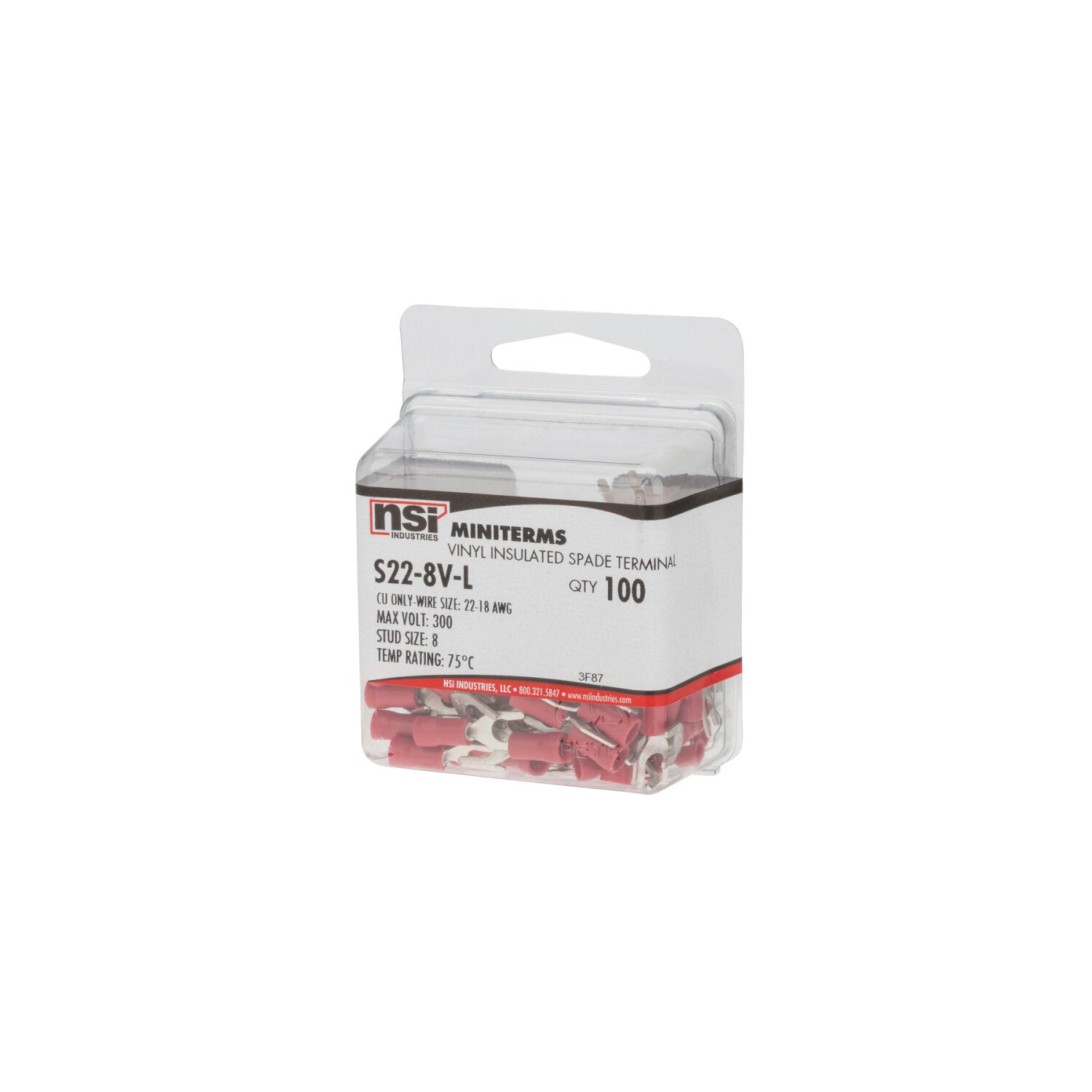 NSI S22-8V-L 22-18 Awg Vinyl Insulated Locking Spade 100 Per Pack