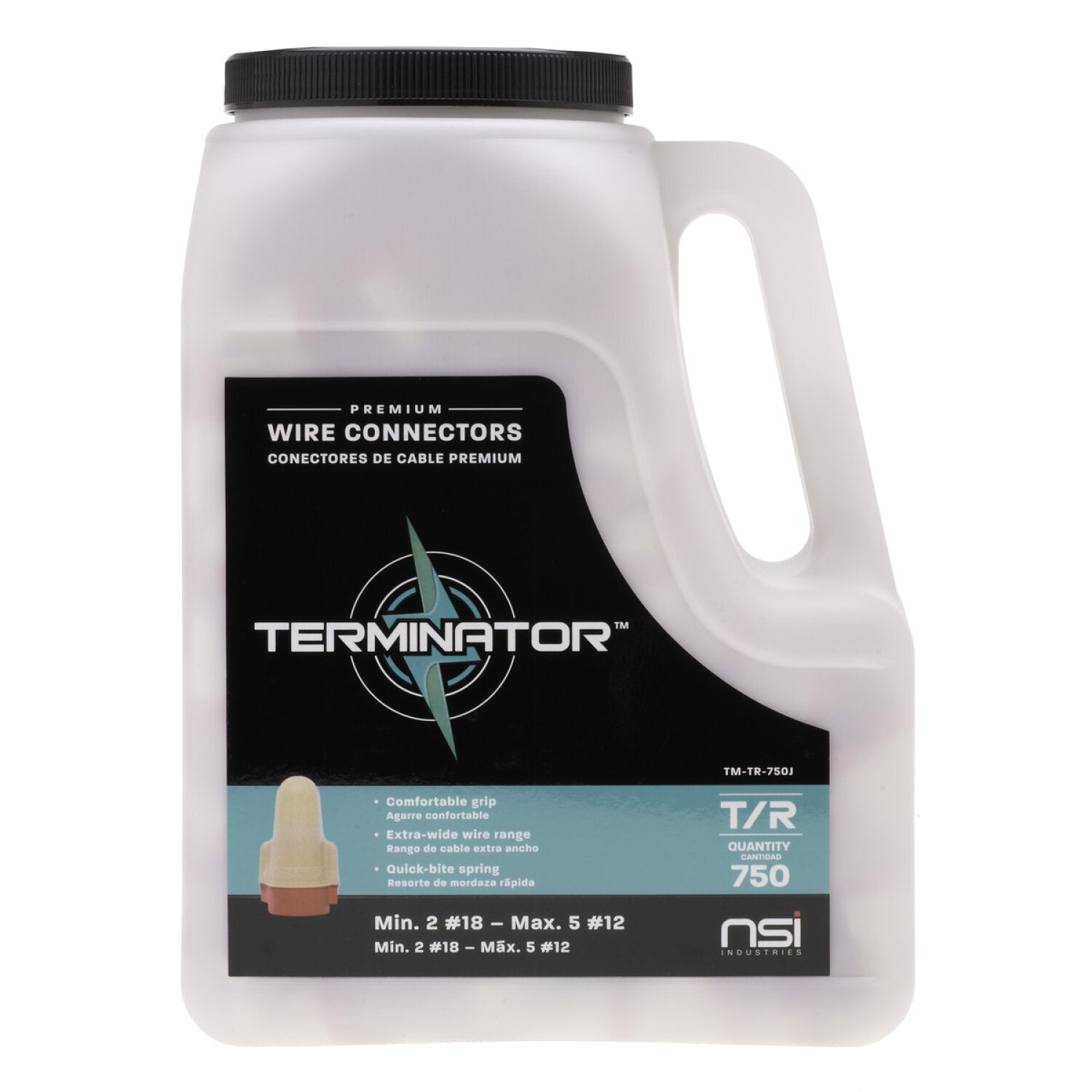 Extra-Wide Wire Range: TERMINATOR Tan/Red combines a flexible skirt and an expanding spring to fit a range of solid or stranded wires from 18-12 AWG