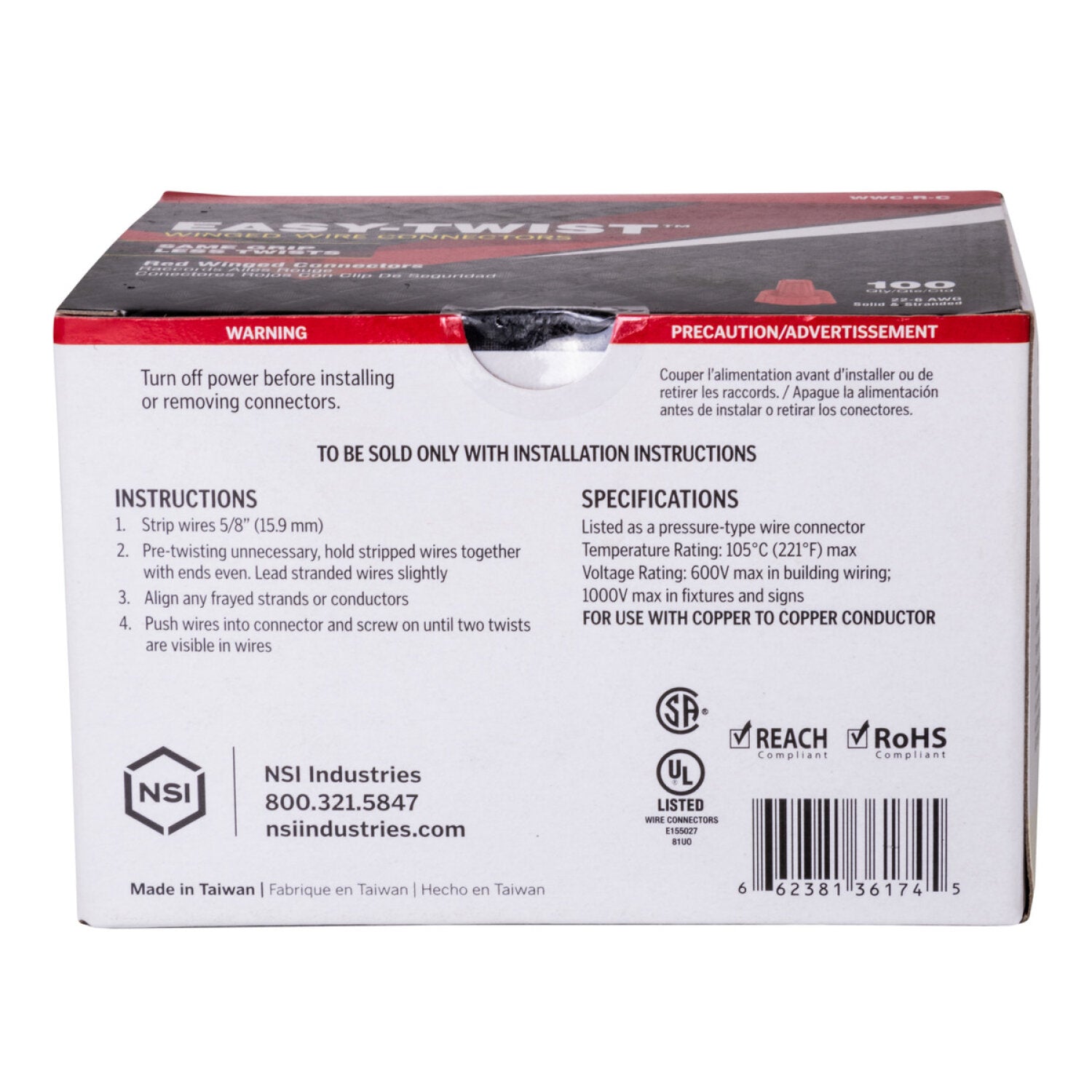 NSI WWC-R-C Red Winged Wire Connector with Quick-Grip Spring, 100 Carton