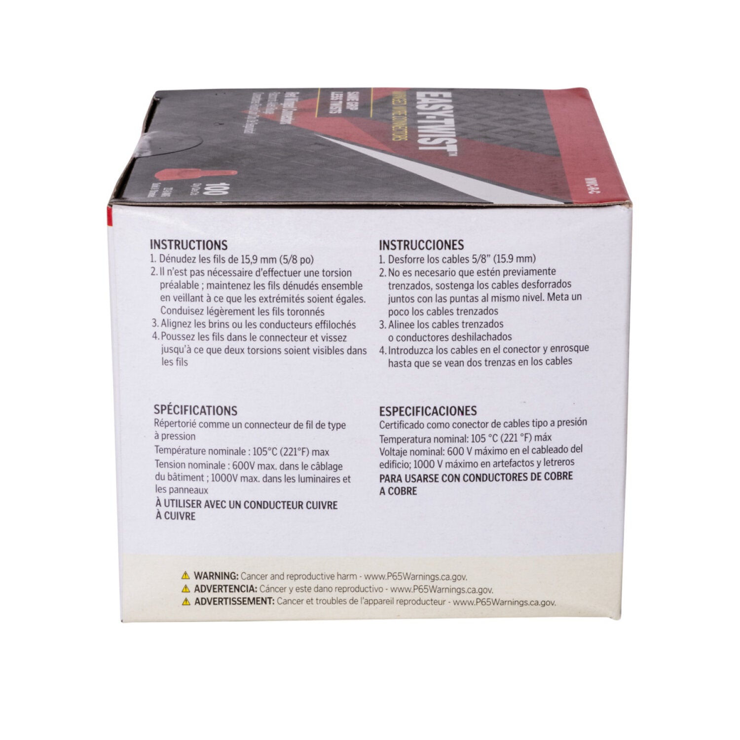 Easy-Twist wire connectors are the professional choice for forming quick, secure connections between wires in the field. The specialized spring design grips in fewer twists and the outside of the connector is ribbed to offer a comfortable grip.