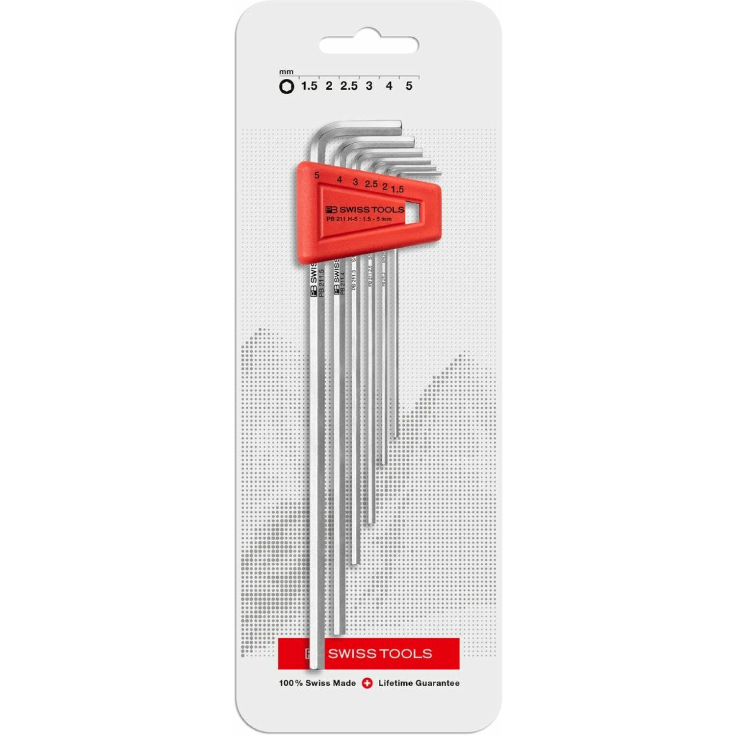 PB Swiss PB 211.H-5 CN Hex Key L- Wrenches Set for Hexagon Socket Screws, Long 6 Pcs