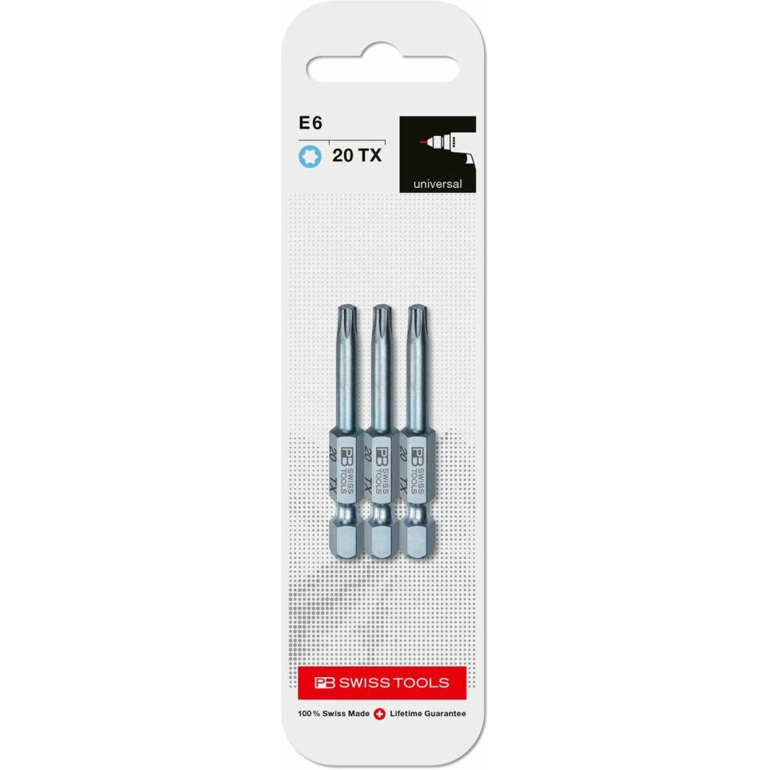PB Swiss Tools PB E6.400/20 CN3 PrecisionBit, Design E 6.3 TORX® , Size 20 , 3 Piece - 1/4 Inch