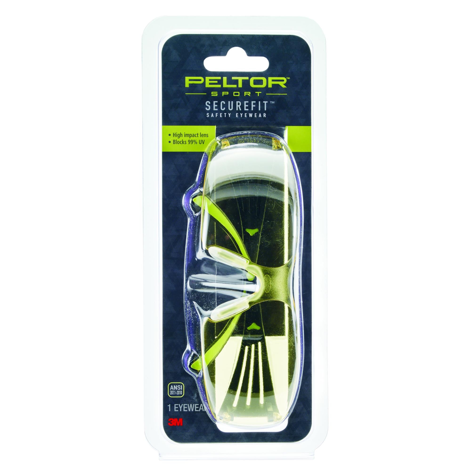 Low-profile, flexible temples are ideal for use with hearing protection. Contemporary, lightweight and wraparound lens design provides excellent coverage and good field of vision. Blocks 99.9% UV.SecureFit™ 400 protective eyewear with Amber lens. Low profile, flexible temples are ideal for use with hearing protection. Contemporary, lightweight and wraparound lens design provides excellent coverage and good field of vision. Blocks 99.9% UV. The lens is constructed of a polycarbonate, amber lens with anti fog coating. Meets ANSI Z87.1 2010