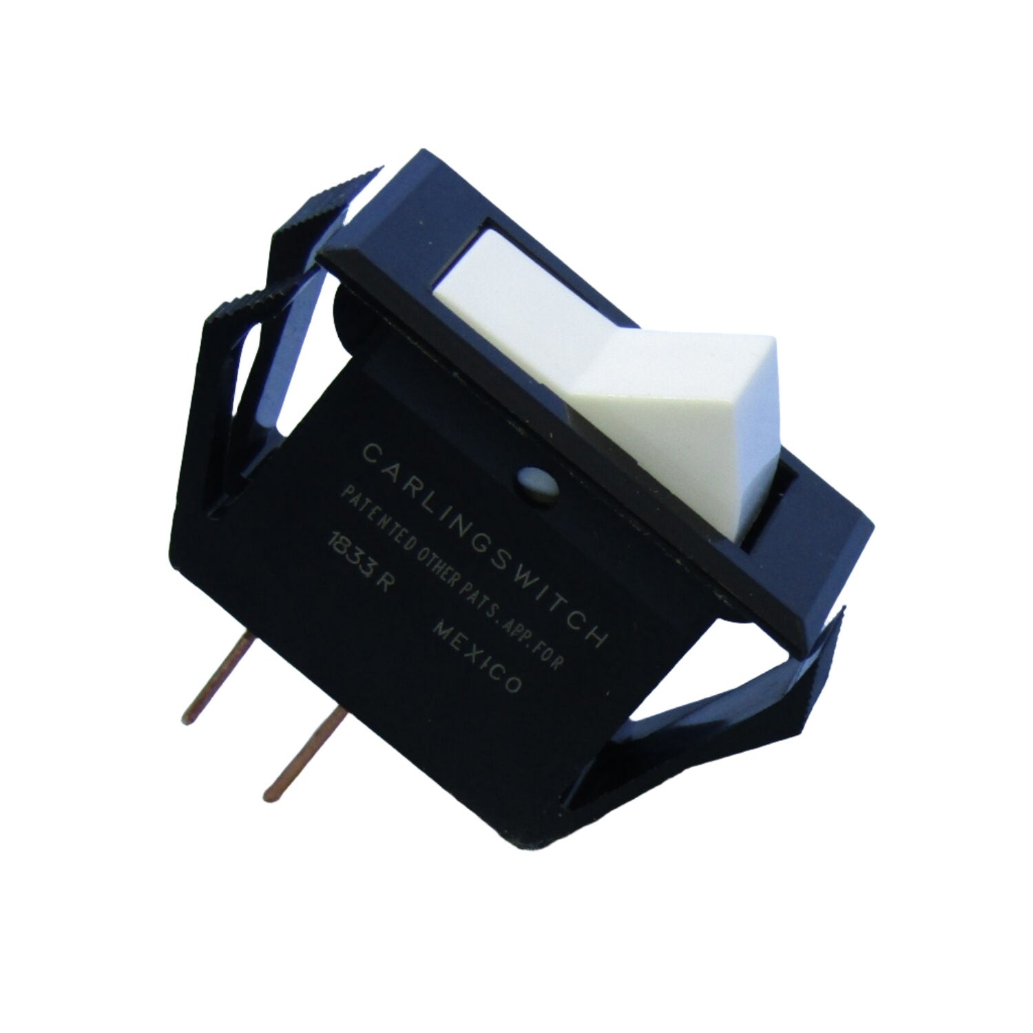 - SPST, action: off - (on) momentary, actuator: white nylon